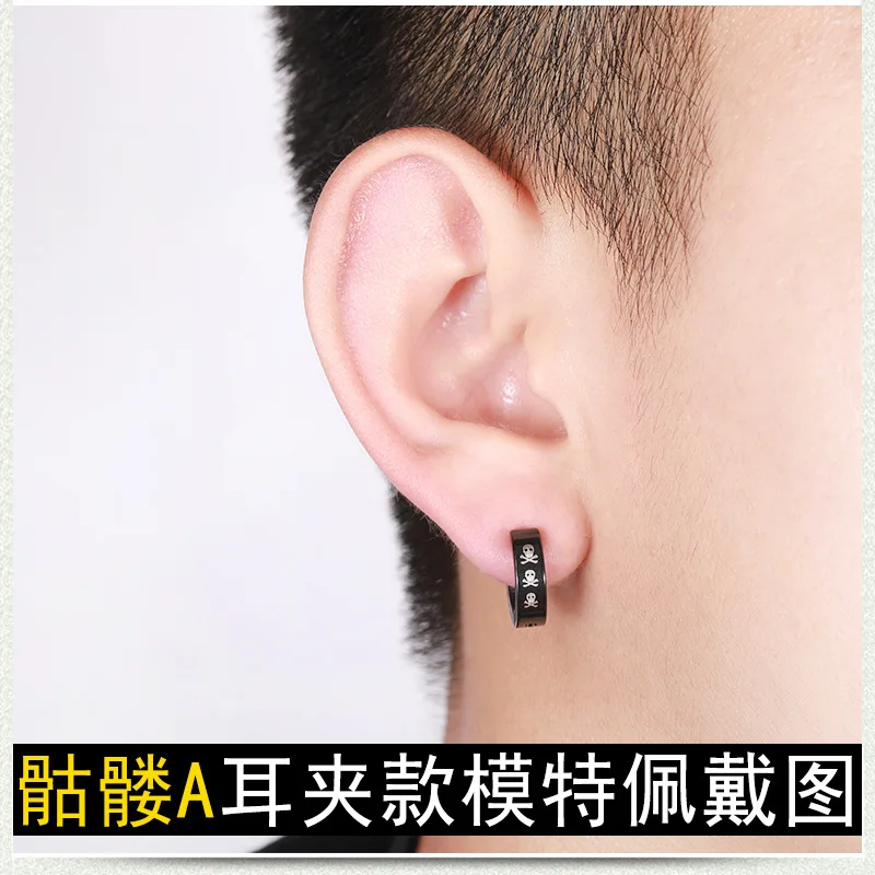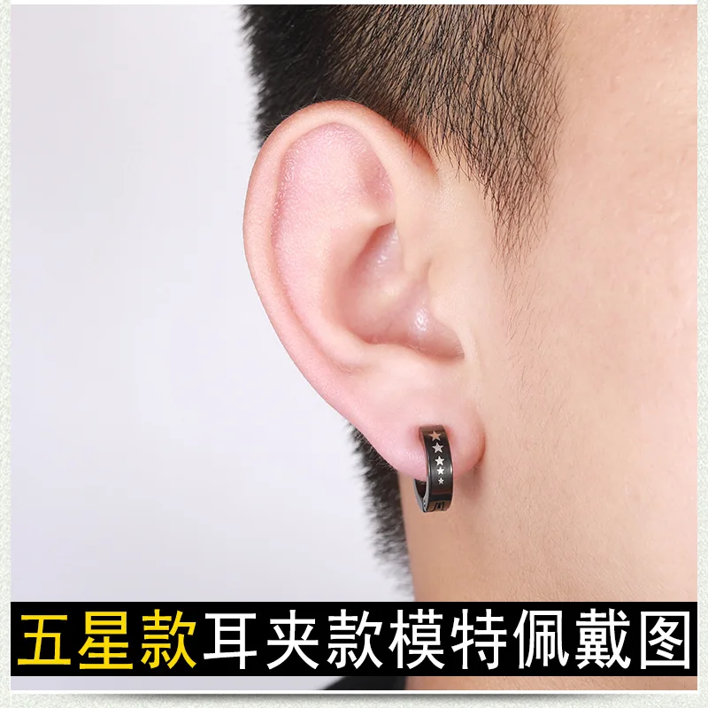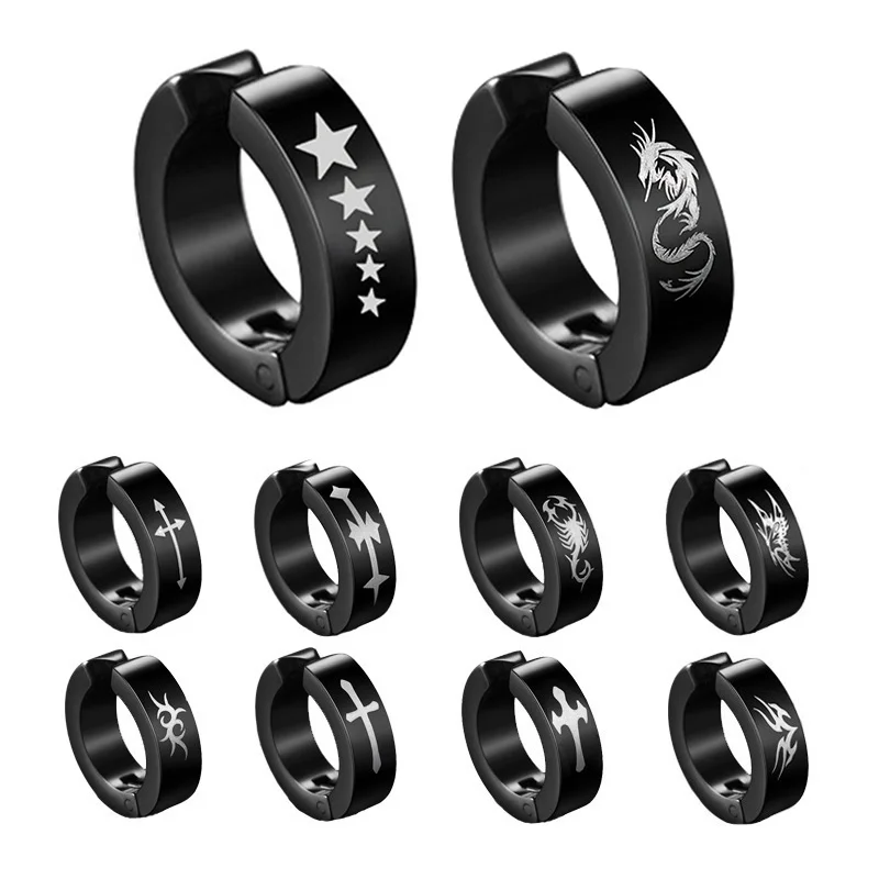 Клипсы из нержавеющей стали для мужчин и женщин в стиле панк, ювелирное изделие с черным узором без проколов, с имитацией колец, 1 штука