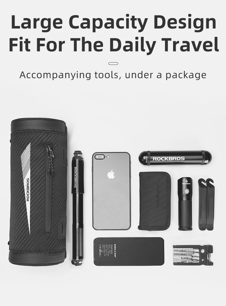 Водонепроницаемый и сдержанный. Идеально помещается в руль. Хорошее пространство для переноски.