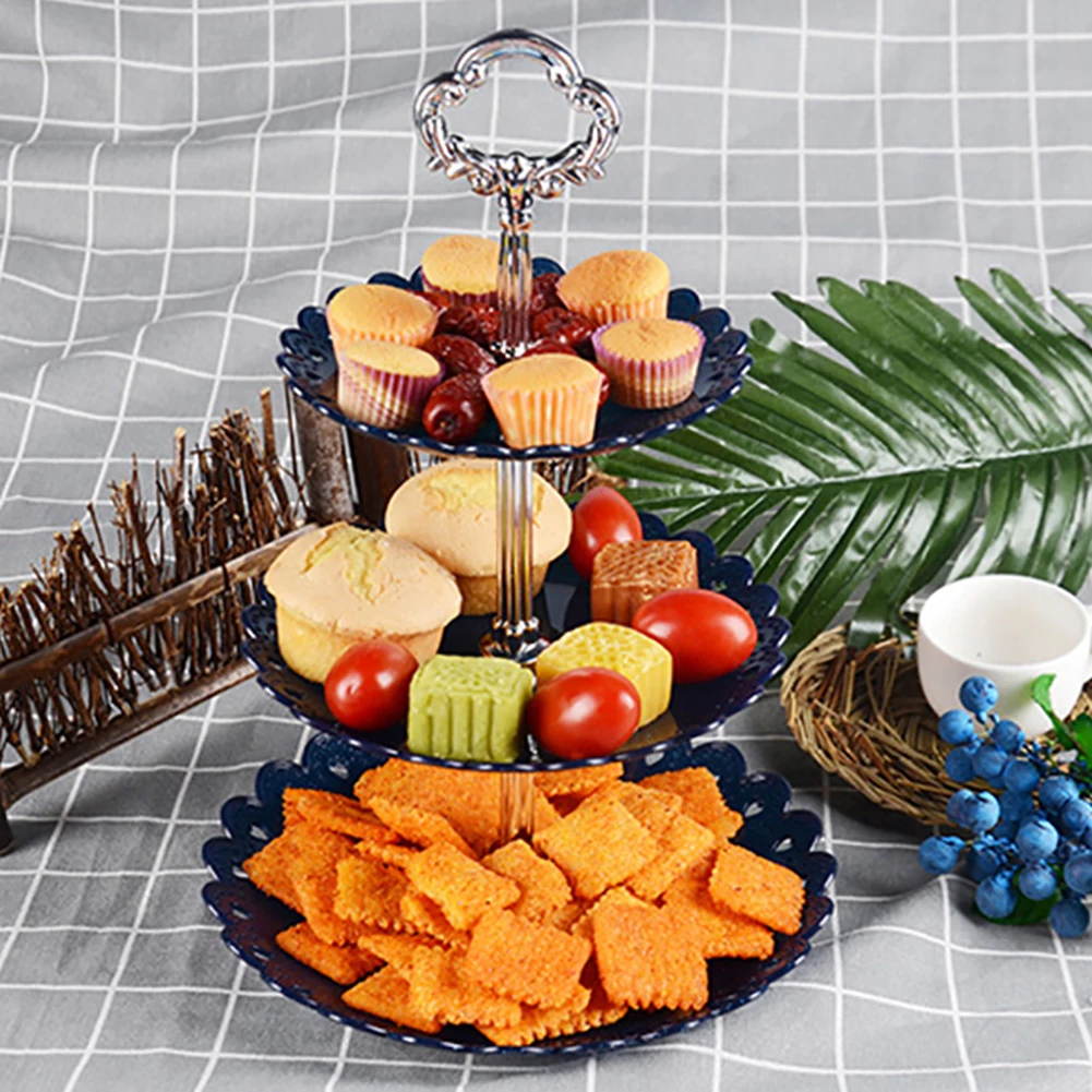 Портативный трехуровневый тарелка для фруктов, пирожных контейнер для хранения конфет, десертов, стойка, держатель Домашняя вечеринка, праздник, принадлежности для торта