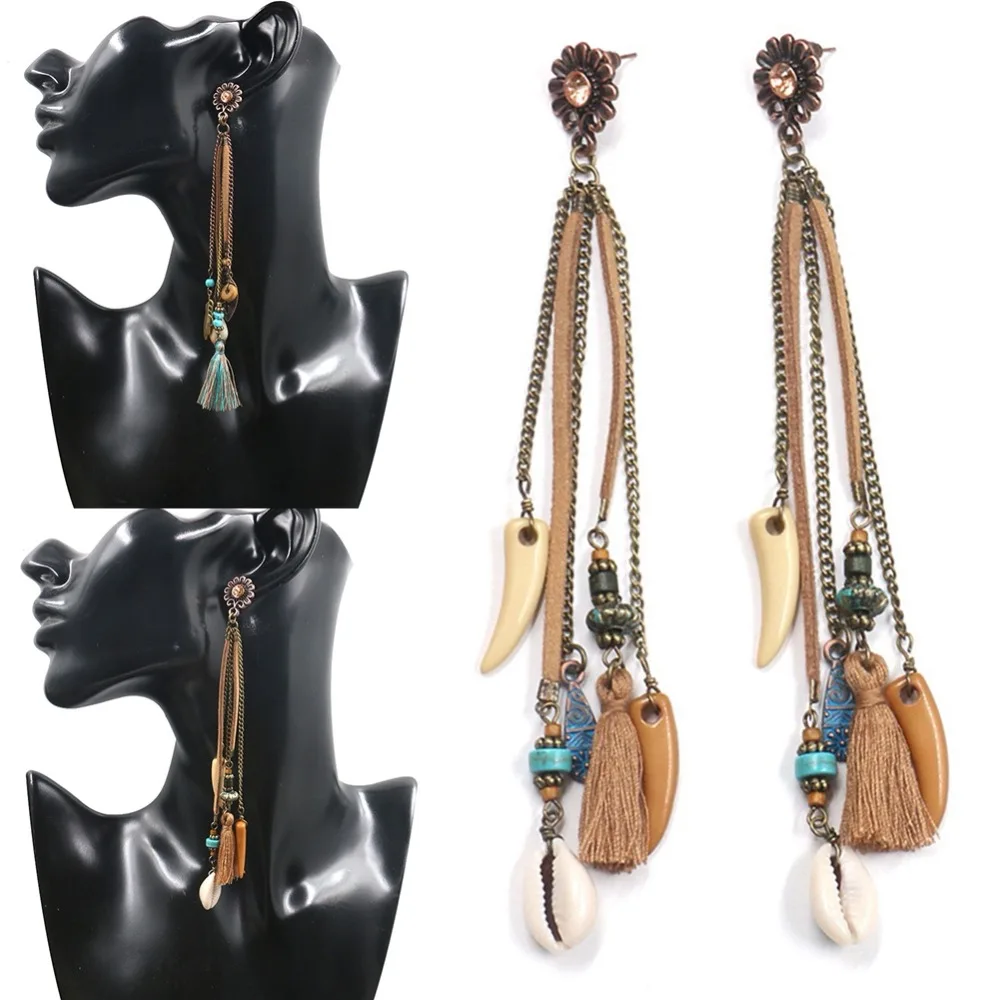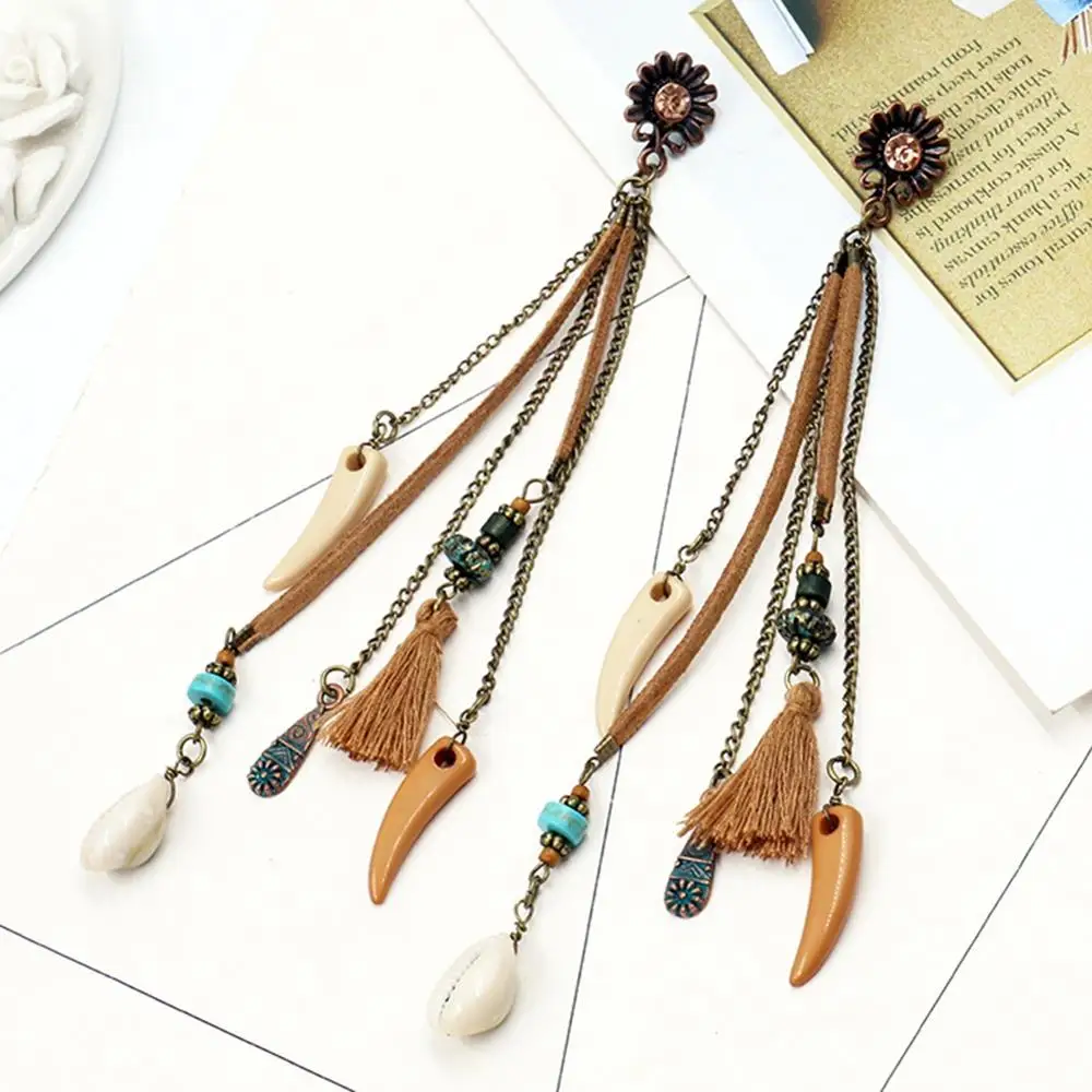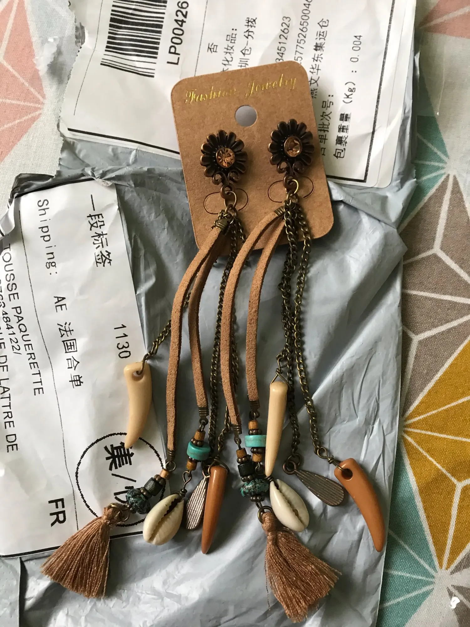 Женские богемные серьги с подвеской в виде ракушки, Винтажные висячие серьги в стиле бохо, турецкие серьги, ювелирные изделия, с длинной бахромой