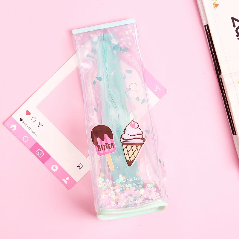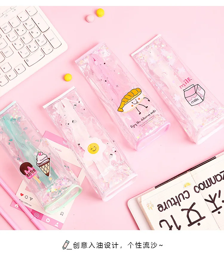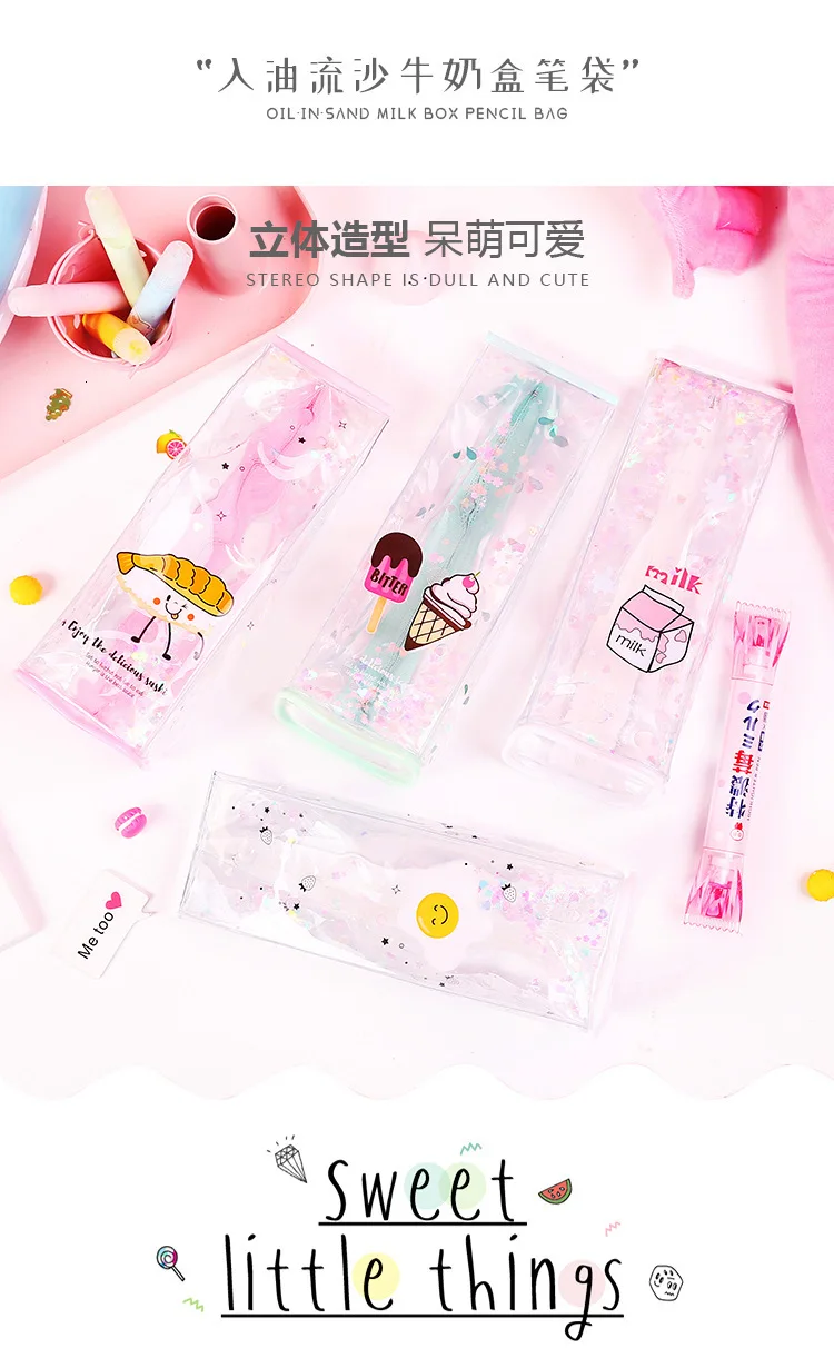 Высококачественный милый пенал и чехол из ПВХ, прозрачный, с молочной жидкостью, для девочек-студентов, Мультяшные розовые сумки для хранения, школьные принадлежности, канцелярские принадлежности