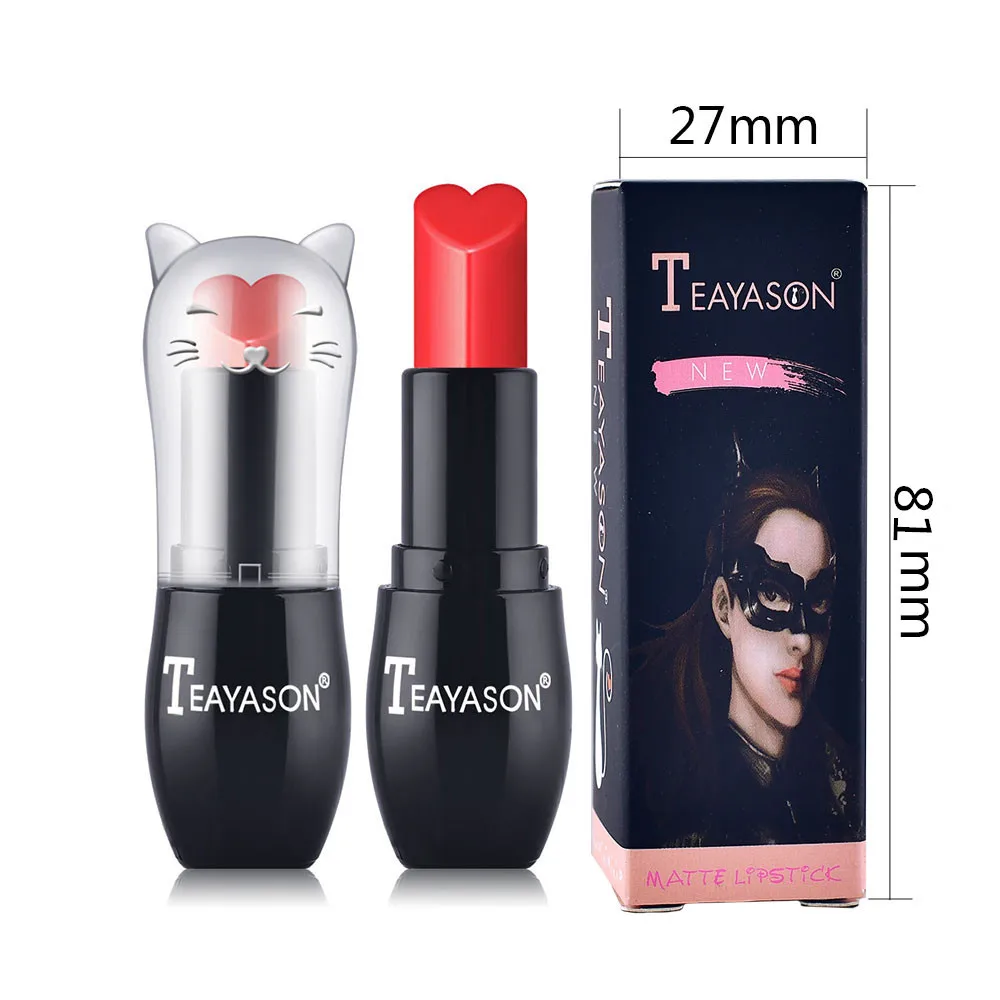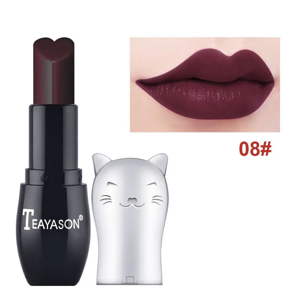 Матовая губная помада TEAYASON 12 цветов в форме милого кота, водостойкая стойкая бархатная Красная бобовая помада для макияжа губ TSLM2