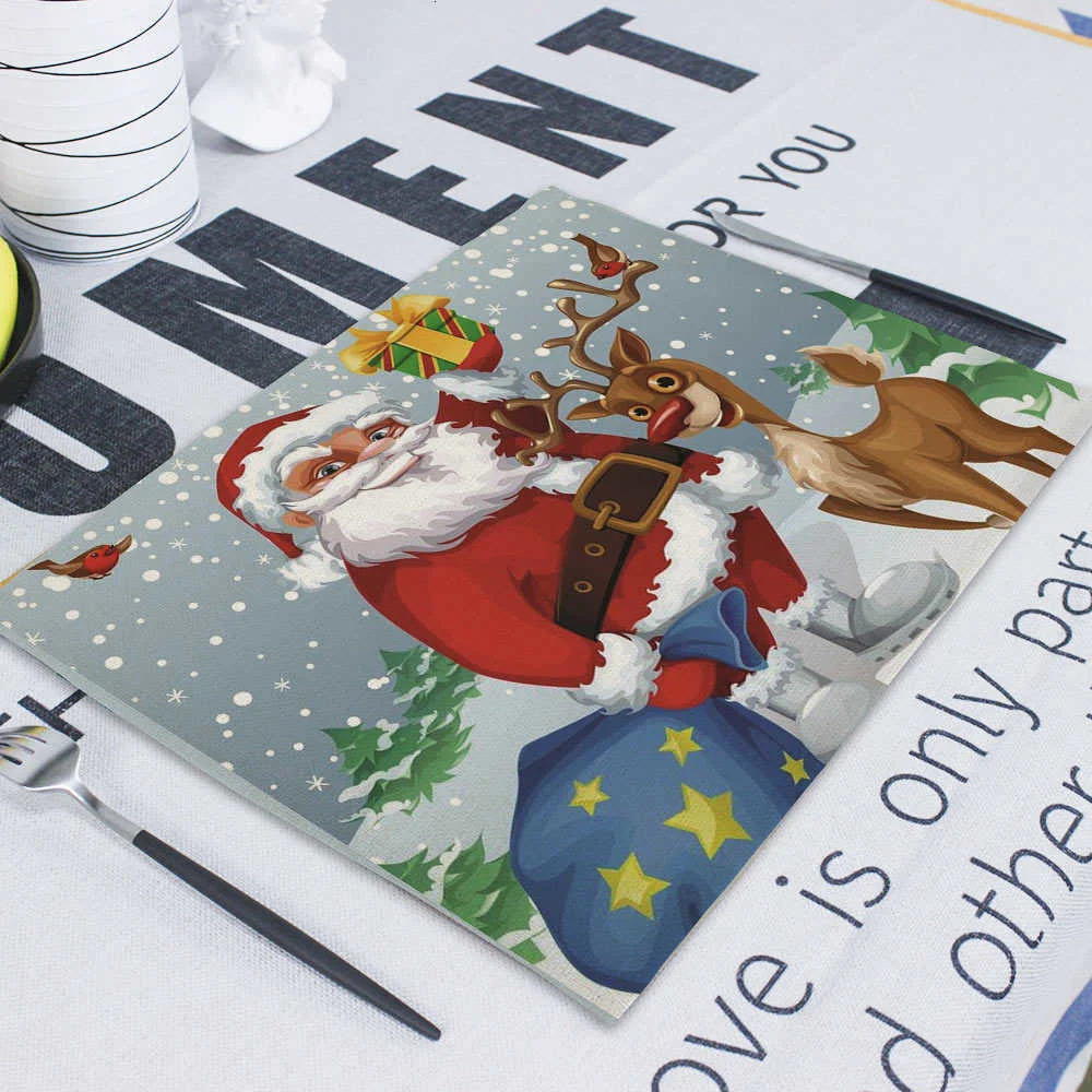 Рождественские столовые салфетки Санта-Клауса салфетки для обеденного стола чашки Coaster салфетки для стола индивидуальный стол американские столовые приборы