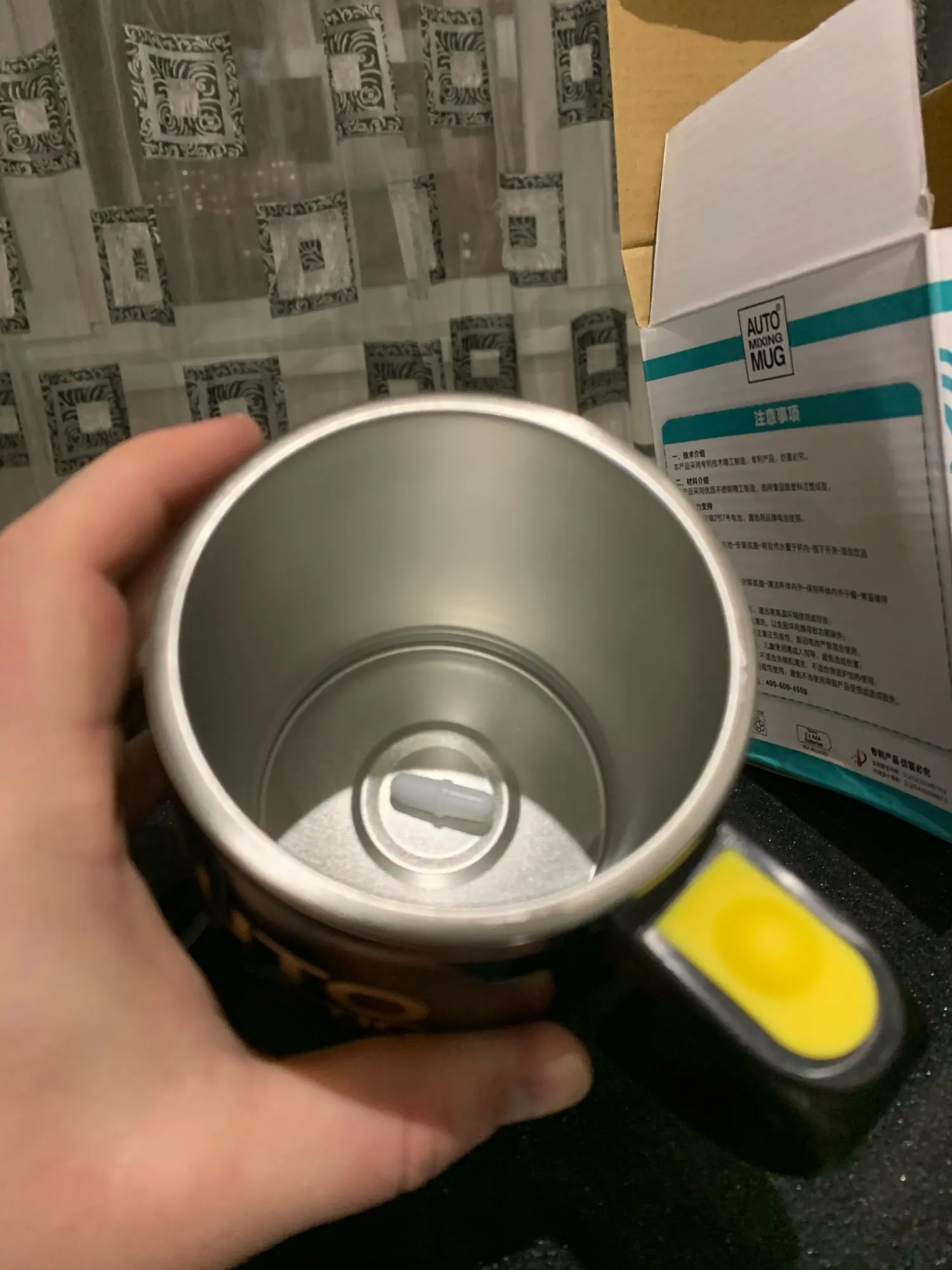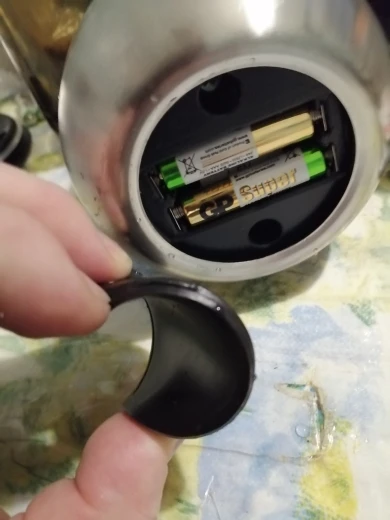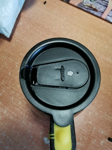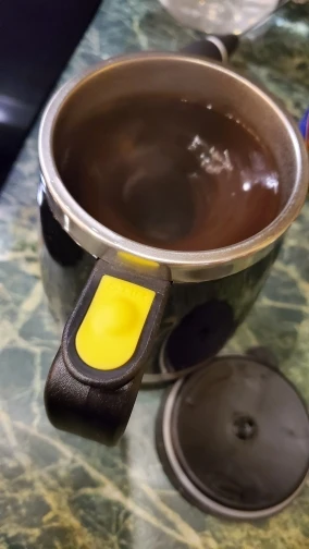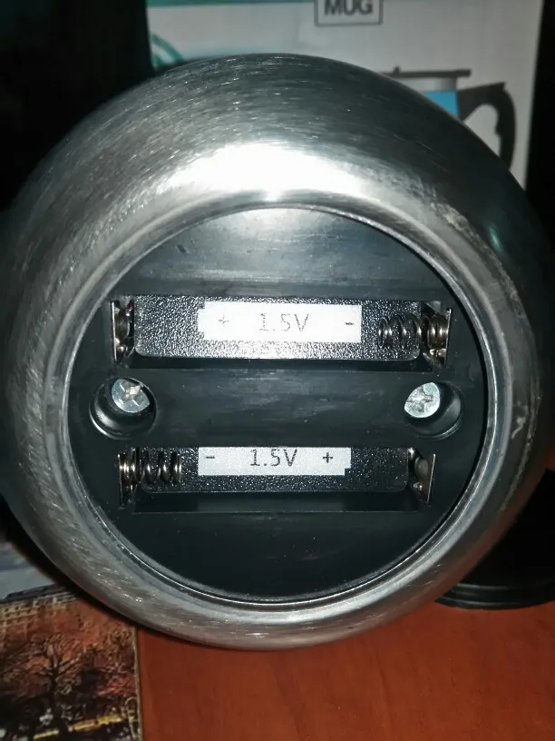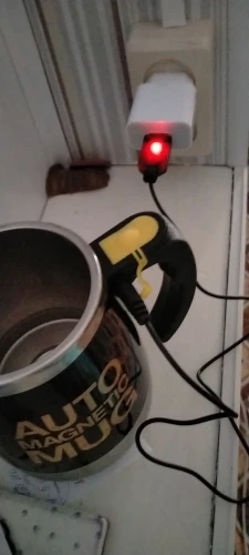 Кружечка выглядит надежно. Не тоненький пластик . Удобная крышка,можно брать с собой в машину,или на работе не будет долго остывать.На донышке под резиновой крышкой,слот для батареек( ААА 2 штуки),в комплект не входят.На ручке кнопка включения. Проверила работу,налив воду,крутит живенько))). Надеюсь поработает подольше.Инструкция,или что то другое,на китайском))))