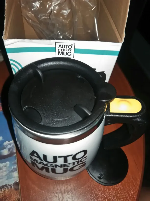 Кружка , доставка была быстрая, упаковано хорошо, пришла без деформации дефектов. Крышка пластиковая, имеется не большой запах. Работает на двух мизинчиковых батарейках, приобретается отдельно. Проверяла работу кружки без содержимого, крутит бодро). Инструкция на китайском языке. Рекомендую.