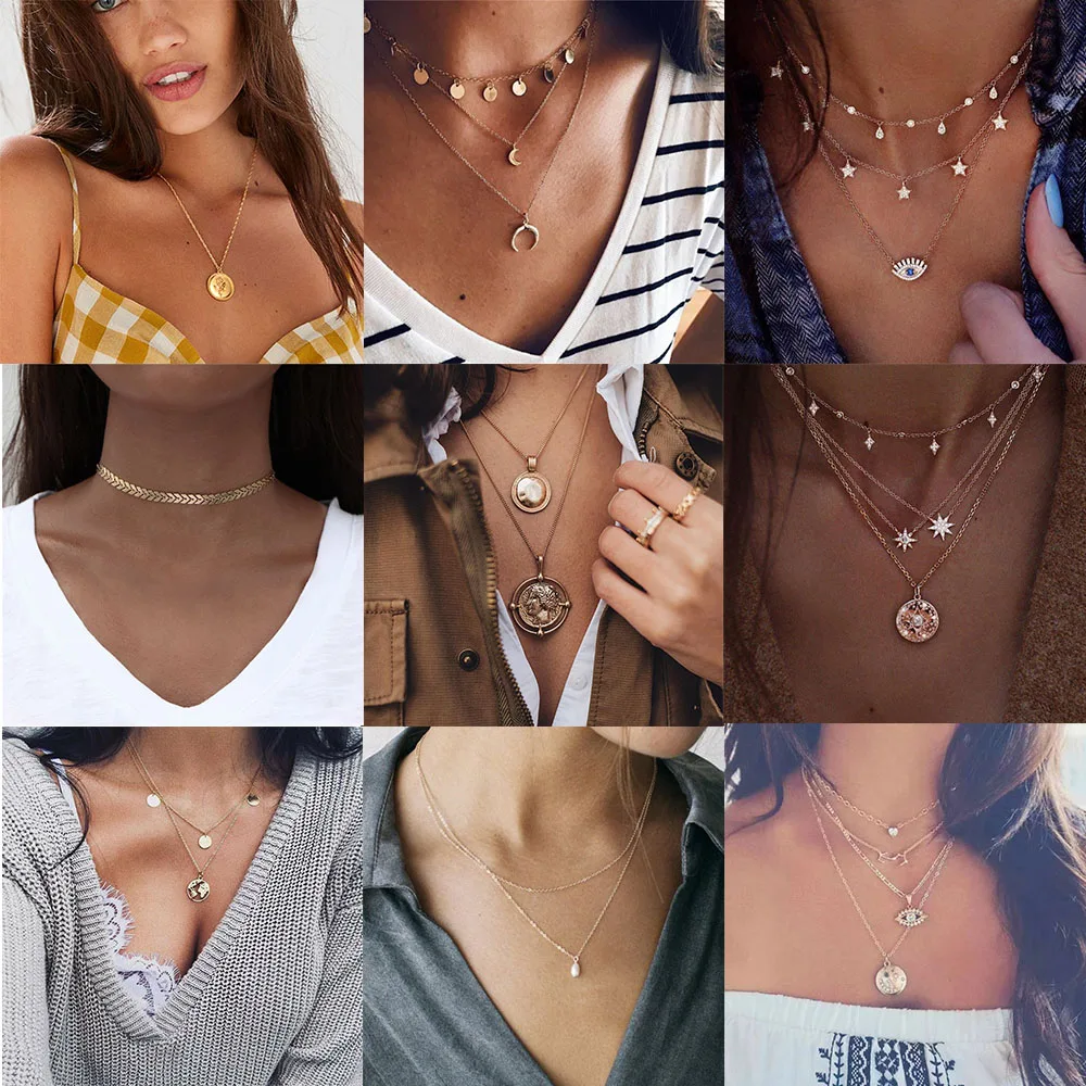 Винтажные Многослойные золотые ожерелья для женщин, модные ожерелья...