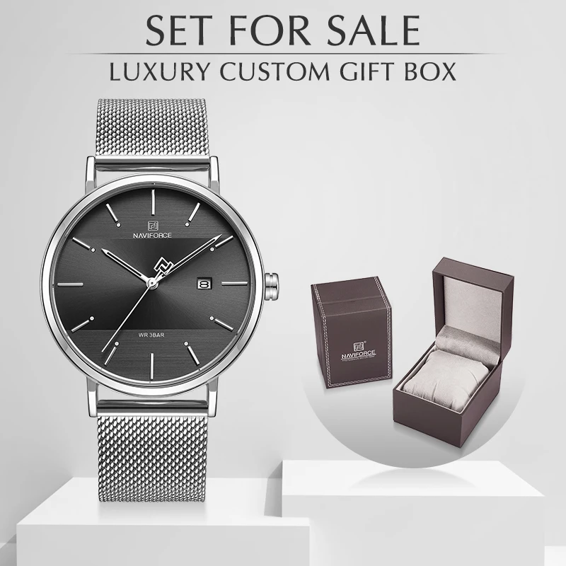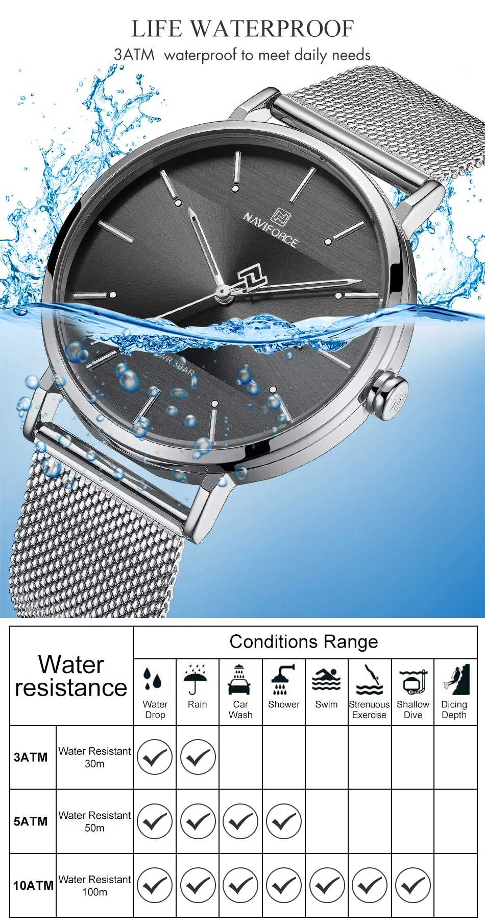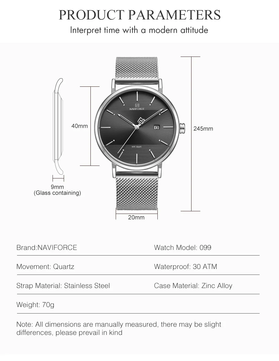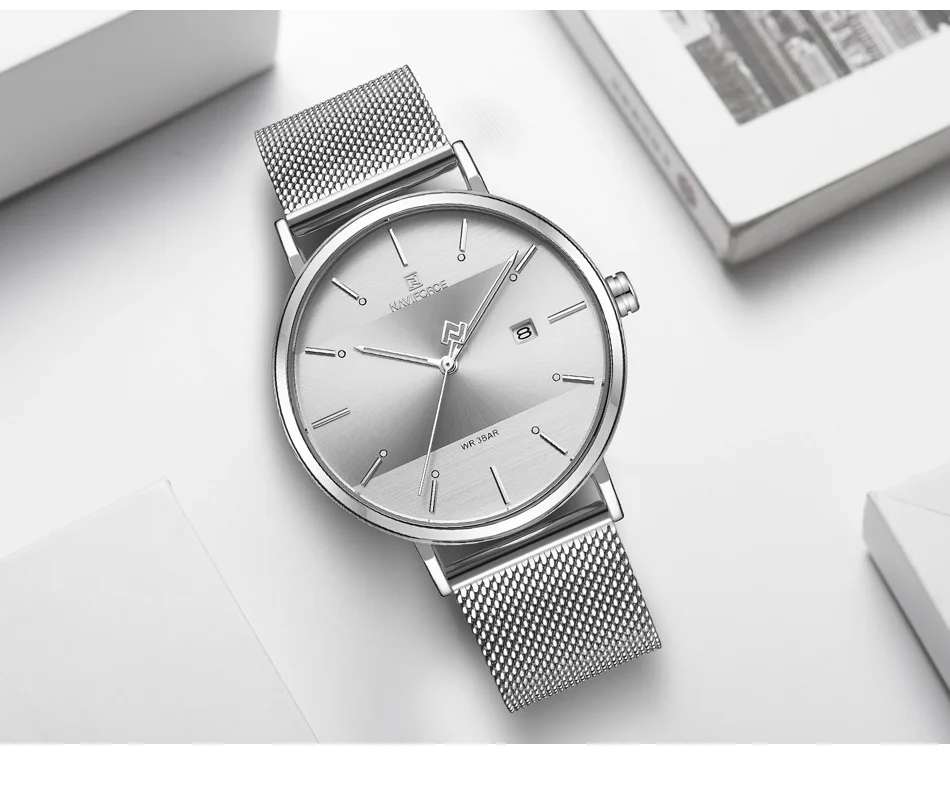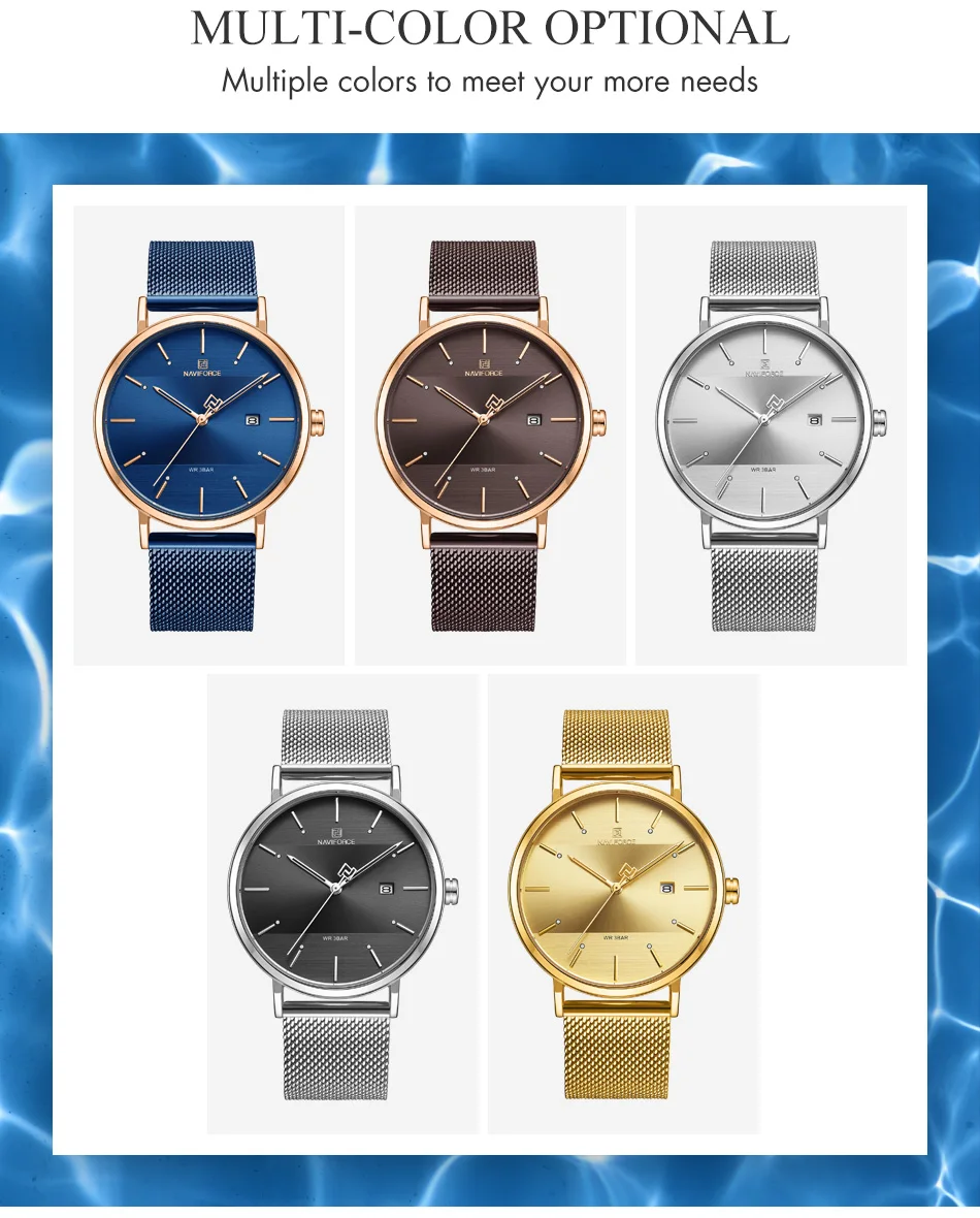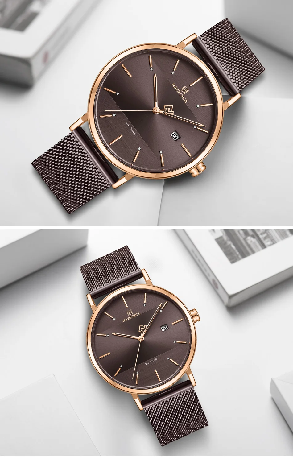 Часы наручные NAVIFORCE Мужские кварцевые, брендовые Простые Стальные сетчатые водонепроницаемые с коробкой