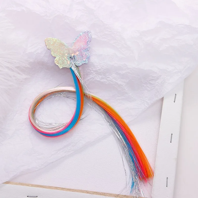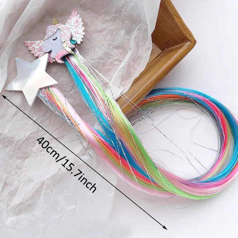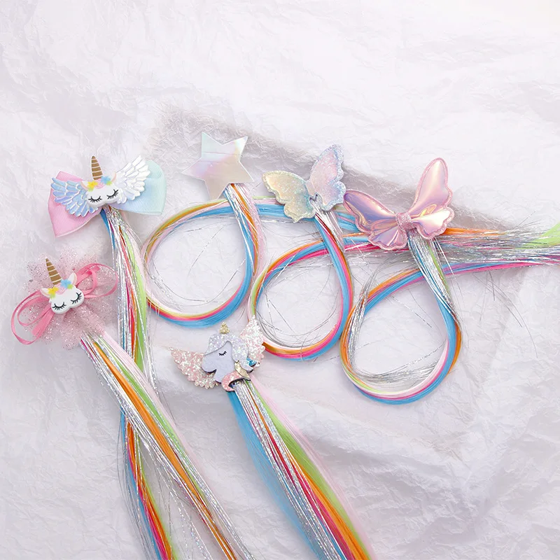 Блестящие лазерные заколки для волос для девочек, бабочки, единорога, звезды, Детские удлинители волос, аксессуары для конского хвоста для вечеринки, танца