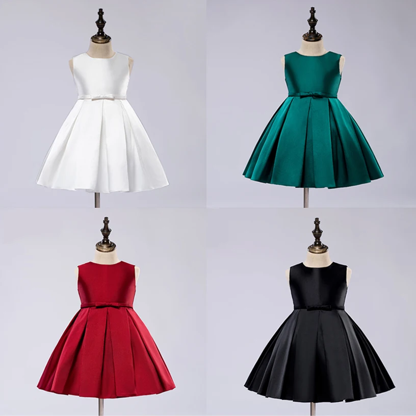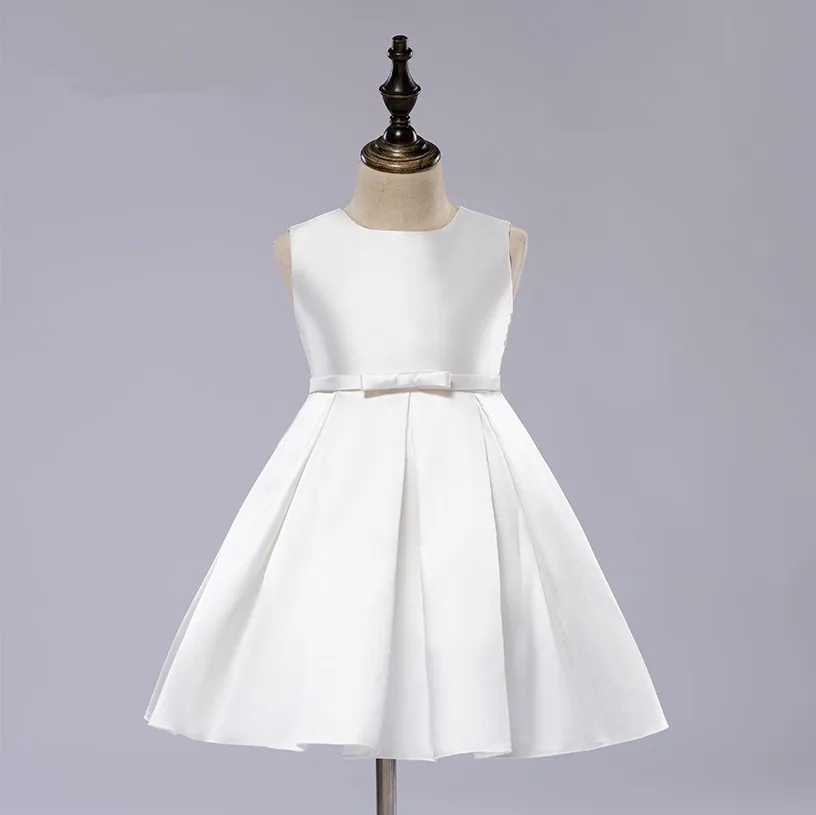 Атласное платье для девочек, белое, без рукавов, для первого причастия