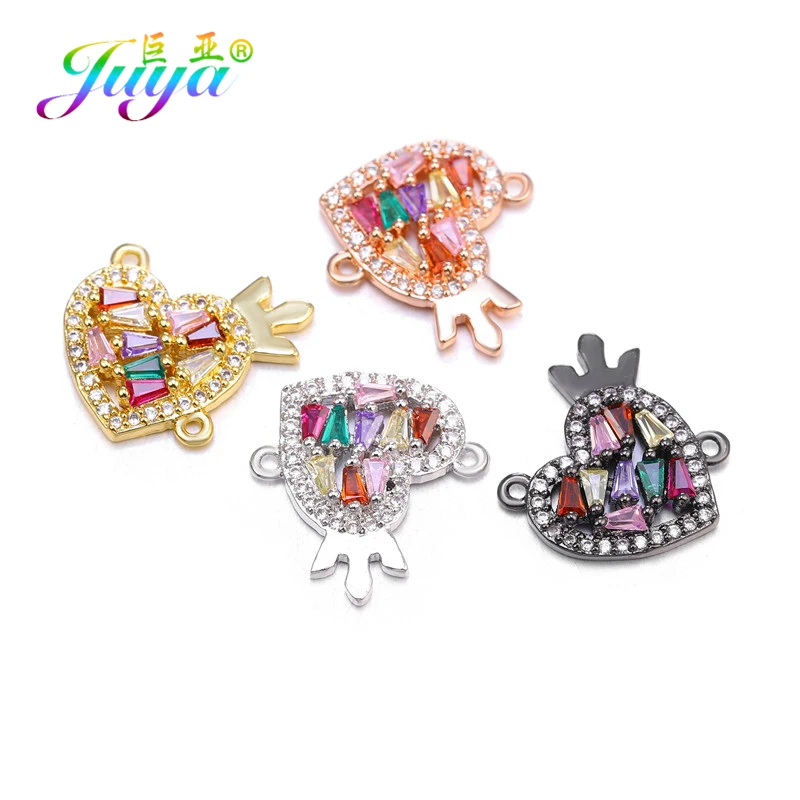 Juya DIY Браслеты, аксессуары для изготовления кубического циркония, сердце, корона, Бабочка, очаровательные соединители для женщин, модные ювелирные изделия ручной работы