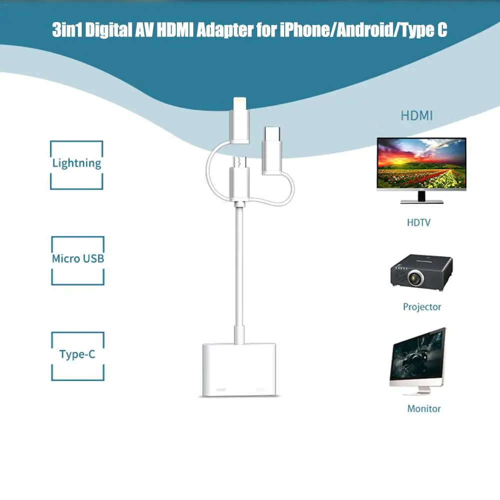 Lightning подключение к HDMI TV AV кабель адаптер для IPad IPhone Android Type C HDMI кабель
