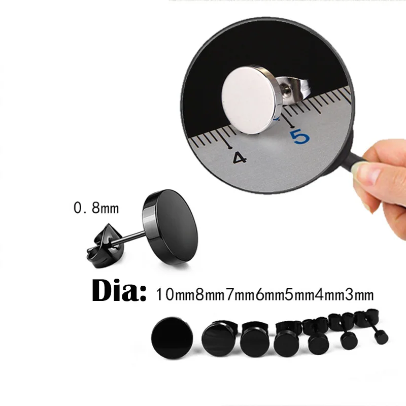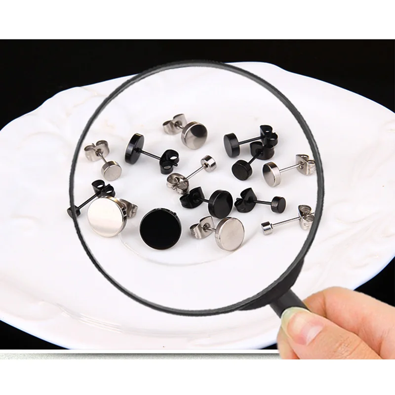 2 шт Панк мужскиеженские серьги-гвоздики из нержавеющей стали черныестальные цветные круглые серьги хип-хоп готические модные ювелирные изделия для ушей