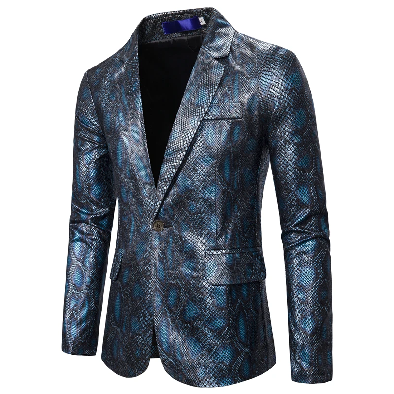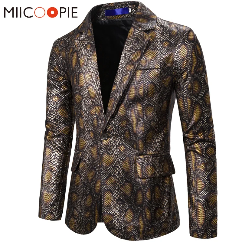 Золотые Бронзовые блейзеры, мужские костюмы, Новое поступление, Роскошный дизайнерский пиджак с 3D змеиным принтом, мужской блейзер для сцены