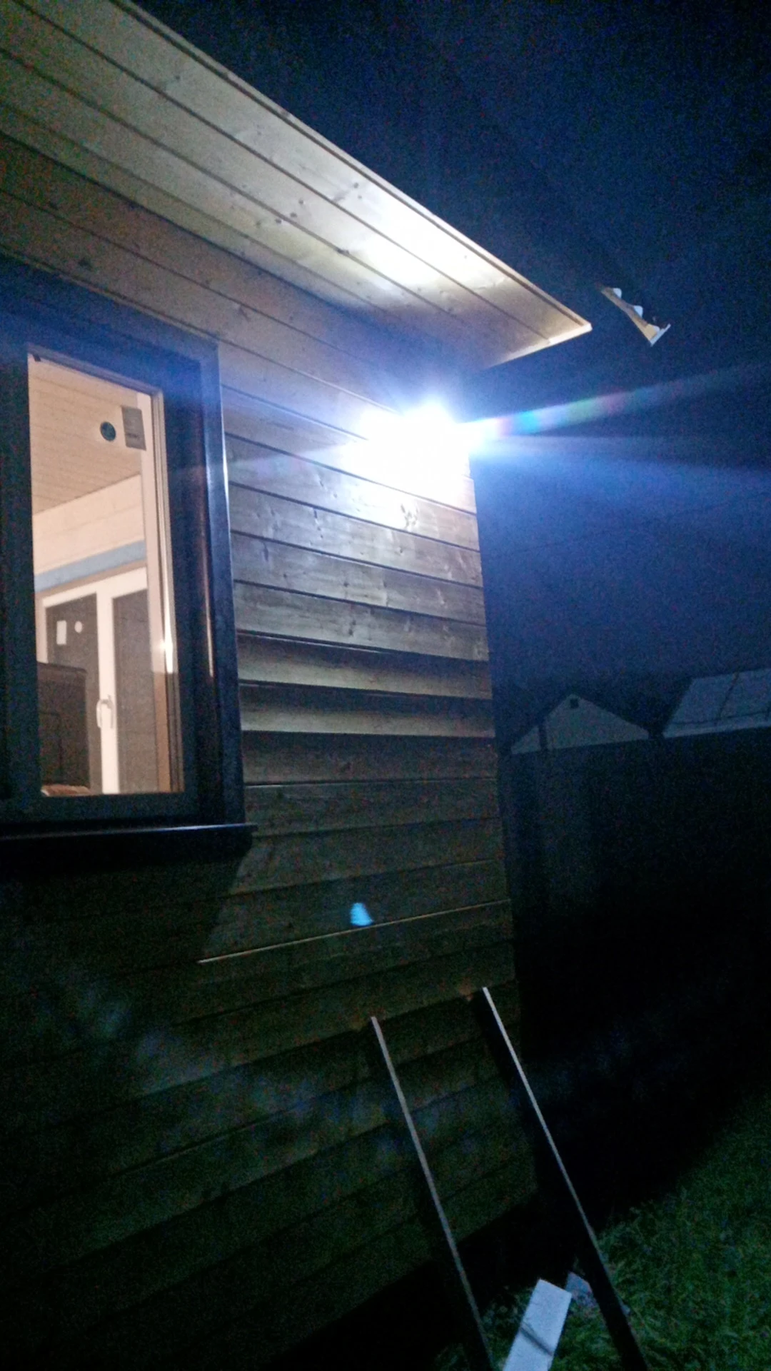 Очень яркий светильник, работает исправно во всех трëх режимах. Имеет датчик света и движения. Реагирует даже на кошку. Покупкой доволен, для дачи очень полезная вещь. Рекомендую.