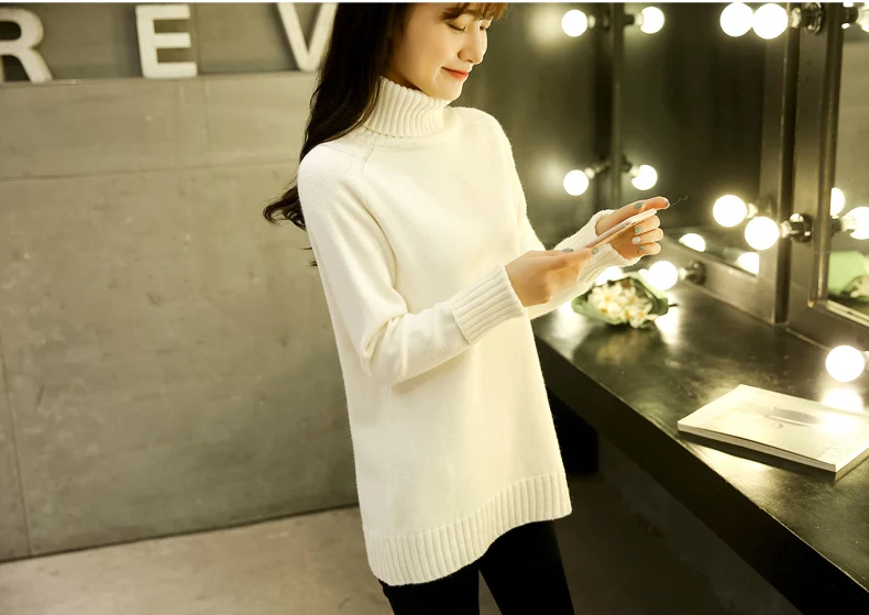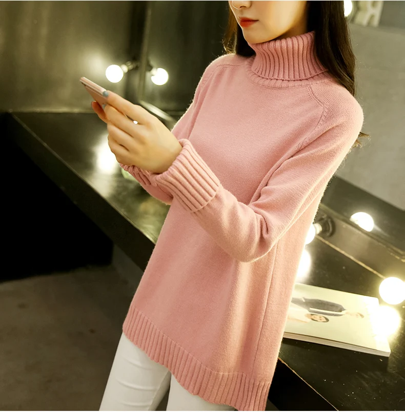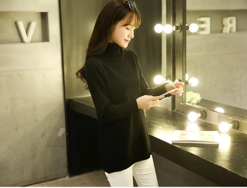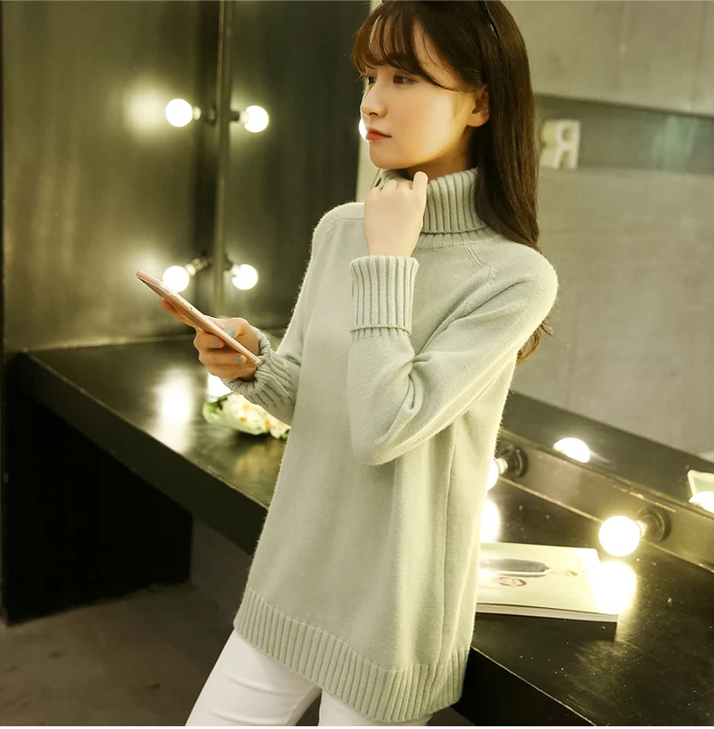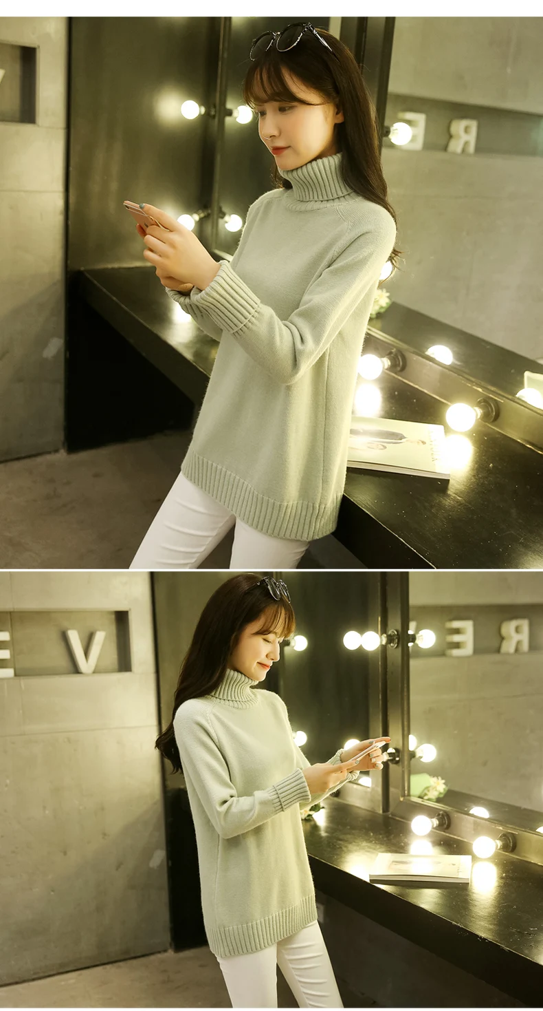 Свитер женский, с воротником-хомутом, теплый, большого размера, 2019