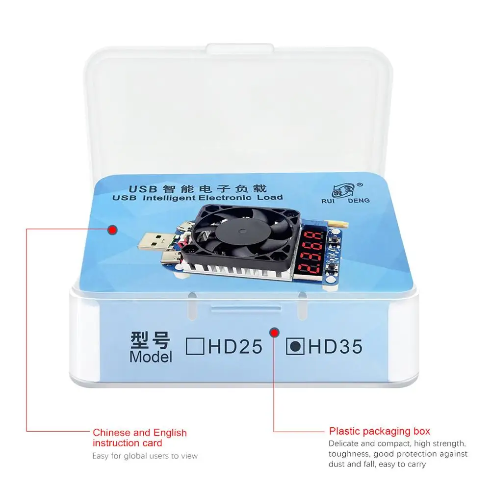 RD HD25 HD35 триггер QC2.0 QC3.0 Электронный USB резистор нагрузки Adj. Ток Напряжение 35 Вт напряжение расходомер Быстрая зарядка тестерОсобенности товара:Название бренда: RDРазмеры: 83.8x41.1x27.9 мм/3,30*1,62*1,10 дюймов (Д * Ш * В)Тип дисплея: ЦифровойНомер модели: HD25/HD35Класс точности: нетПринадлежности для DIY: электрическиеИсточник питания: постоянный токТемпература: -10 градусов ~ 40 градусовНапряжение: 4-25,0 постоянного токаРегулируемый ток: 0,25-4.00A/5.00AМощность: 25 Вт/35 Вт вентиляторРабочая температура: 40 ℃Посылка содержит:Измеритель расхода напряжения тестер быстрой зарядки * 1 шт.