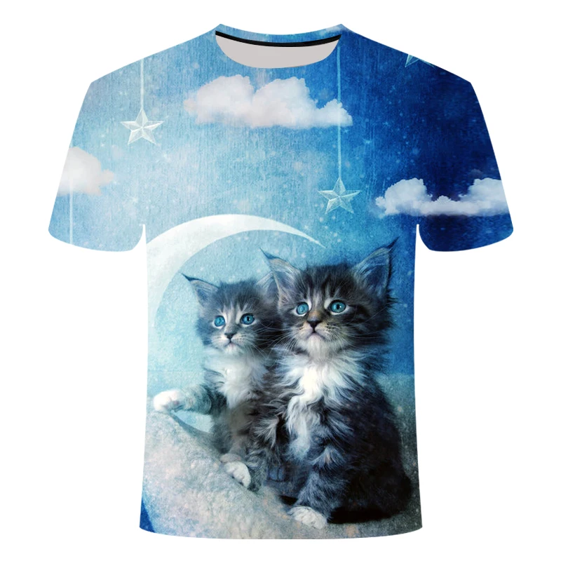 Лидер продаж 2021, новейшая футболка с 3D-принтом милого кота, мужс...