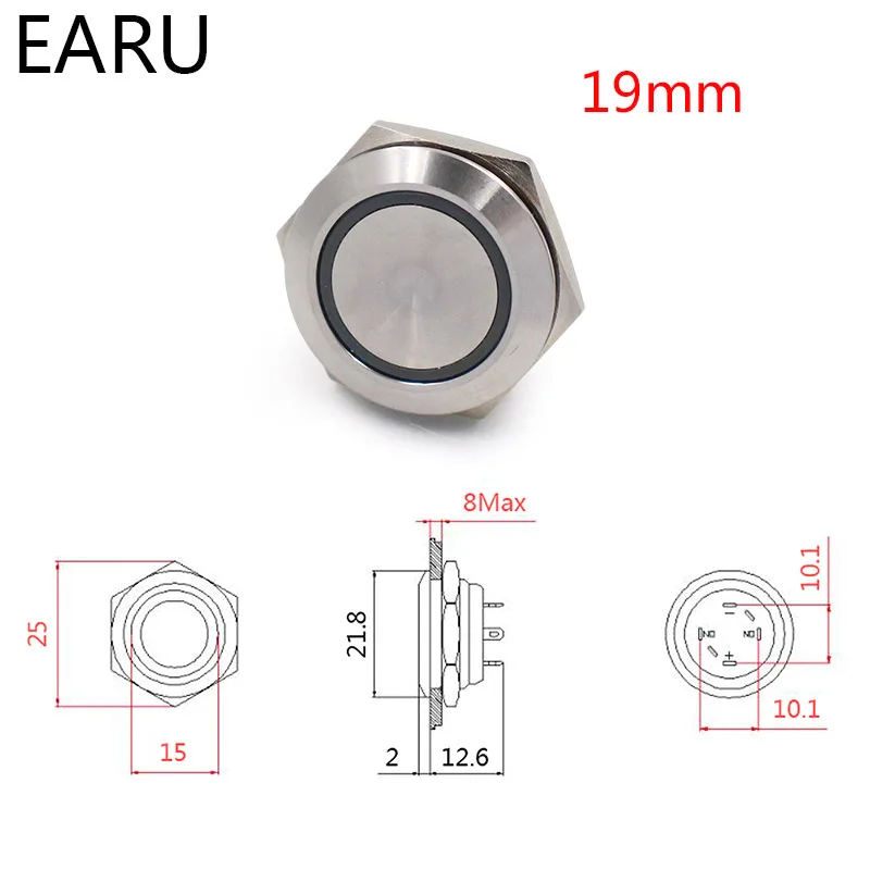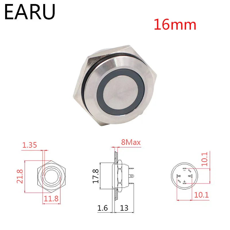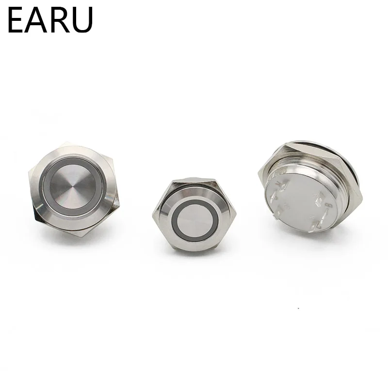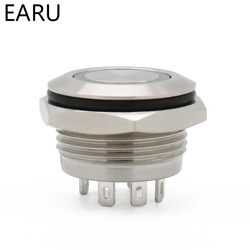 Трехцветный светодиодный RGB-светильник, микро-переключатель с функцией самосброса, водонепроницаемый металлический кнопочный переключатель питания, кратковременный ход, самосброс, 161922 мм