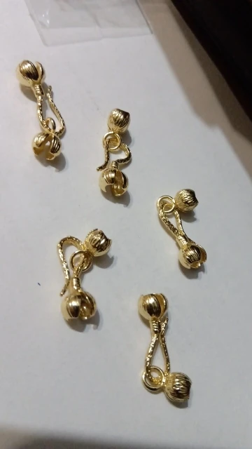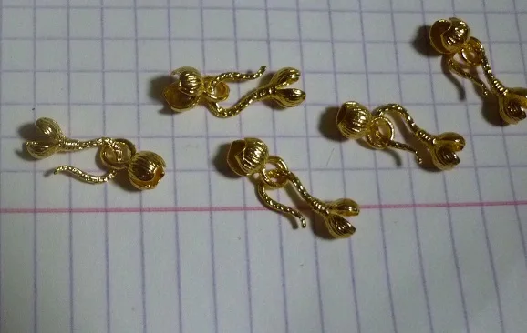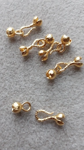 ой,они такие малюсенькие!!! ярко жёлтого цвета особенность такая: из двух зажимающих бусин,одна сжимается пальцами легко! А вот вторая,нет!!!- а сам крючок, который на этой части- также пальцами можно легко сжимать и разжимать из разного металла,что ли???