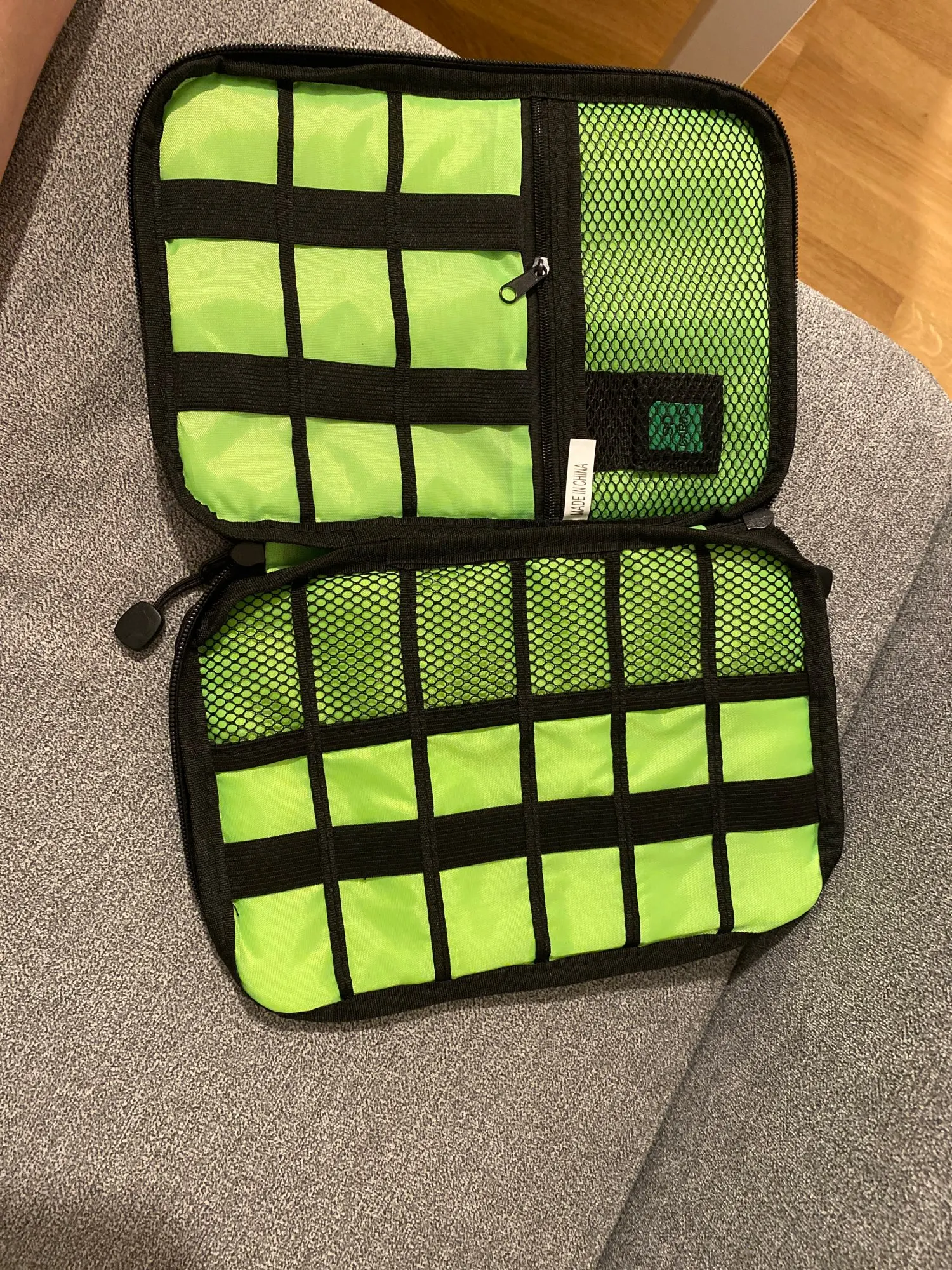 Очень полезный Организатор, я искал его для всех кабелей, которые у меня есть. Прокладки такого вида могут быть лучше, более гибкими, а также тем, что корпус в целом шире для тех широких зарядных устройств.