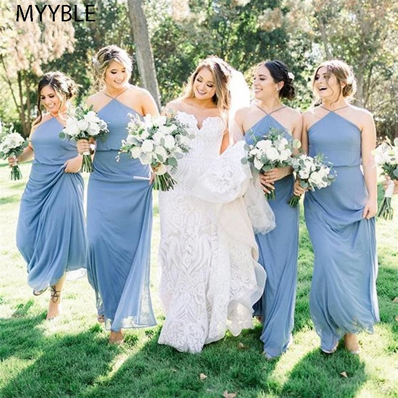 Пыльное синее Тюлевое богемное платье для подружек невесты 2020 с о...