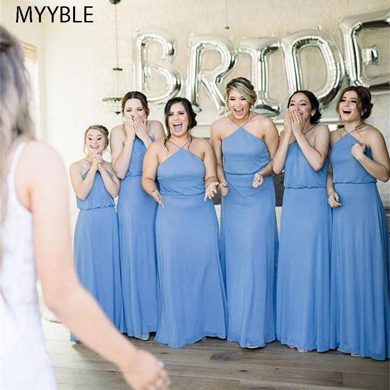 Платье подружки невесты из шифона голубого цвета, без рукавов