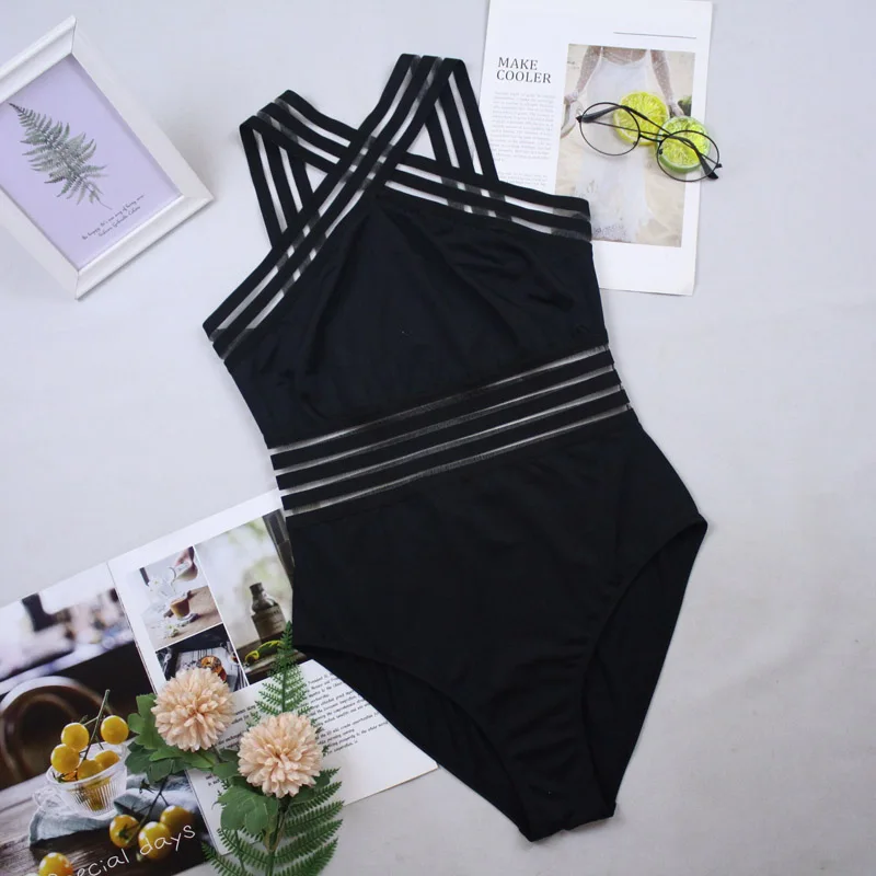Новинка 2019, сексуальный цельный купальник с высоким вырезом, бандажный, с перекрестной спинкой, монокини, черный купальник, женский купальный костюм, maillot de bain femme