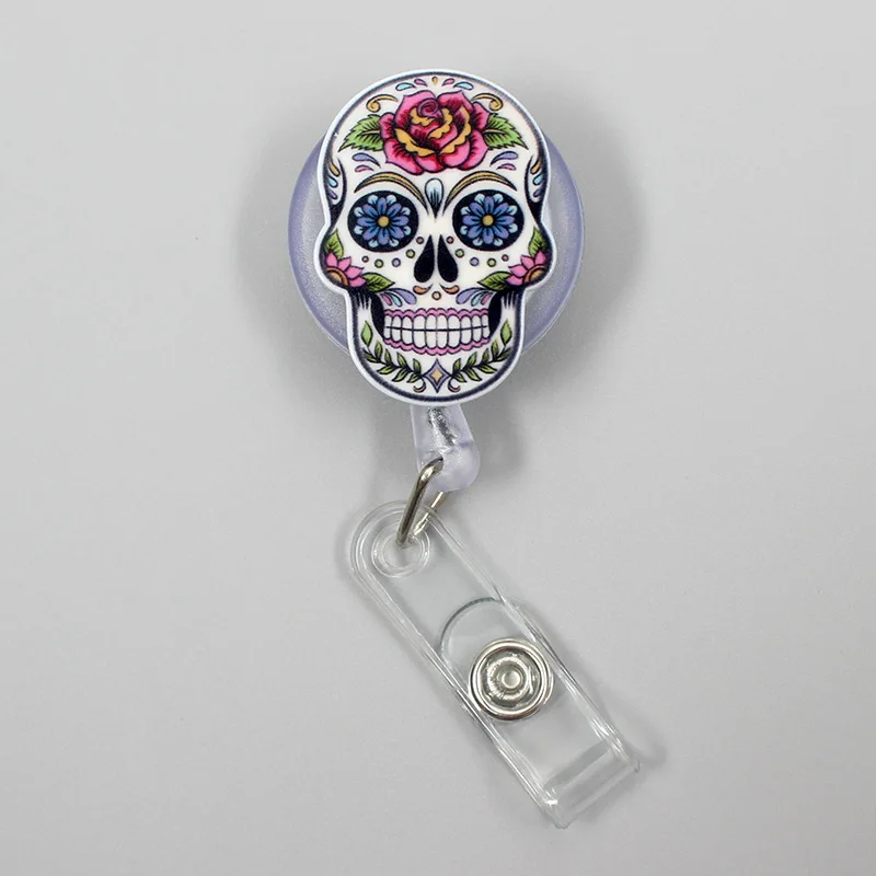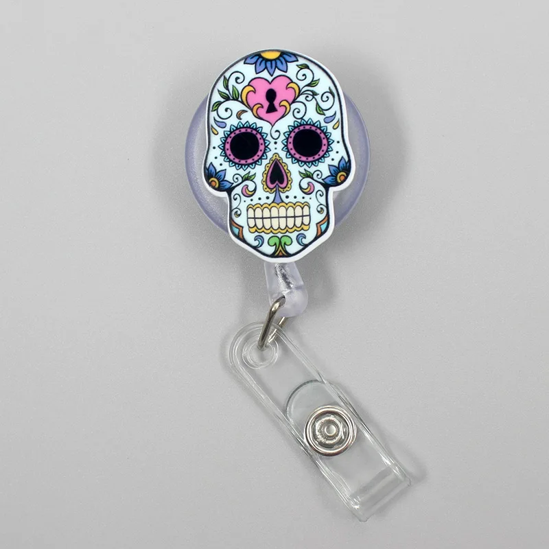 Креативный цветочный череп из смолы выдвижной Бейдж с катушкой для медсестер врачей студентов выставочные Бейджи для удостоверения личности канцелярские товары