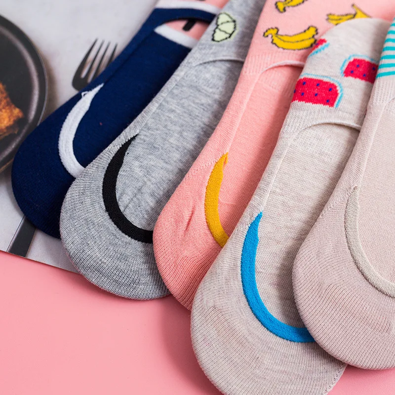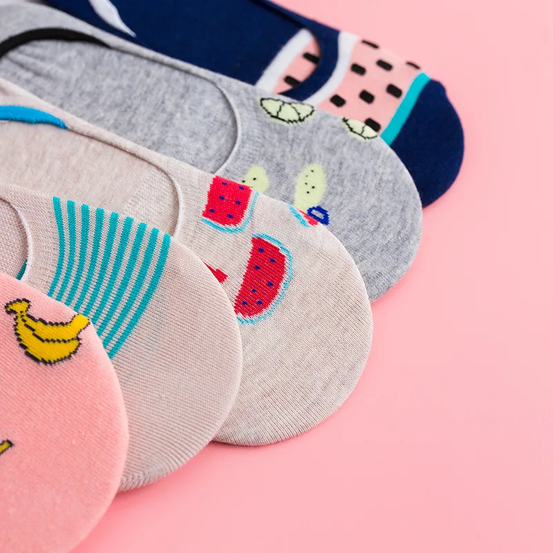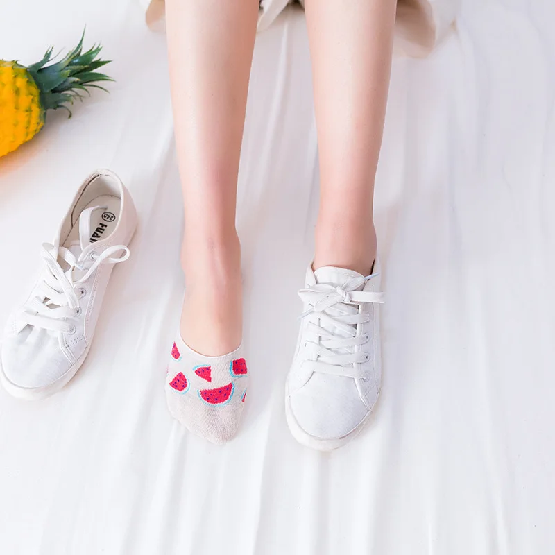 5 пар разноцветных невидимых коротких женских носков с фруктами, Летние удобные хлопковые носки-башмачки для девушек и женщин, низкие повседневные женские носки до щиколотки