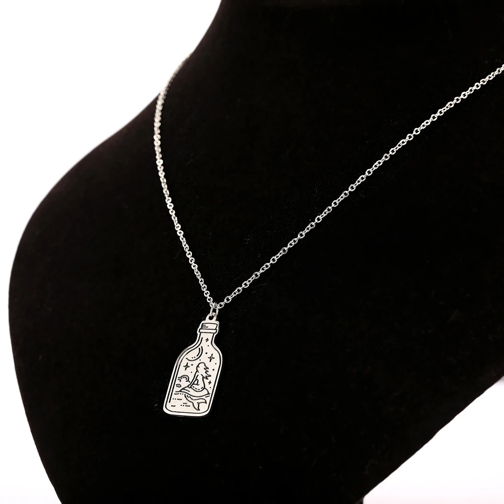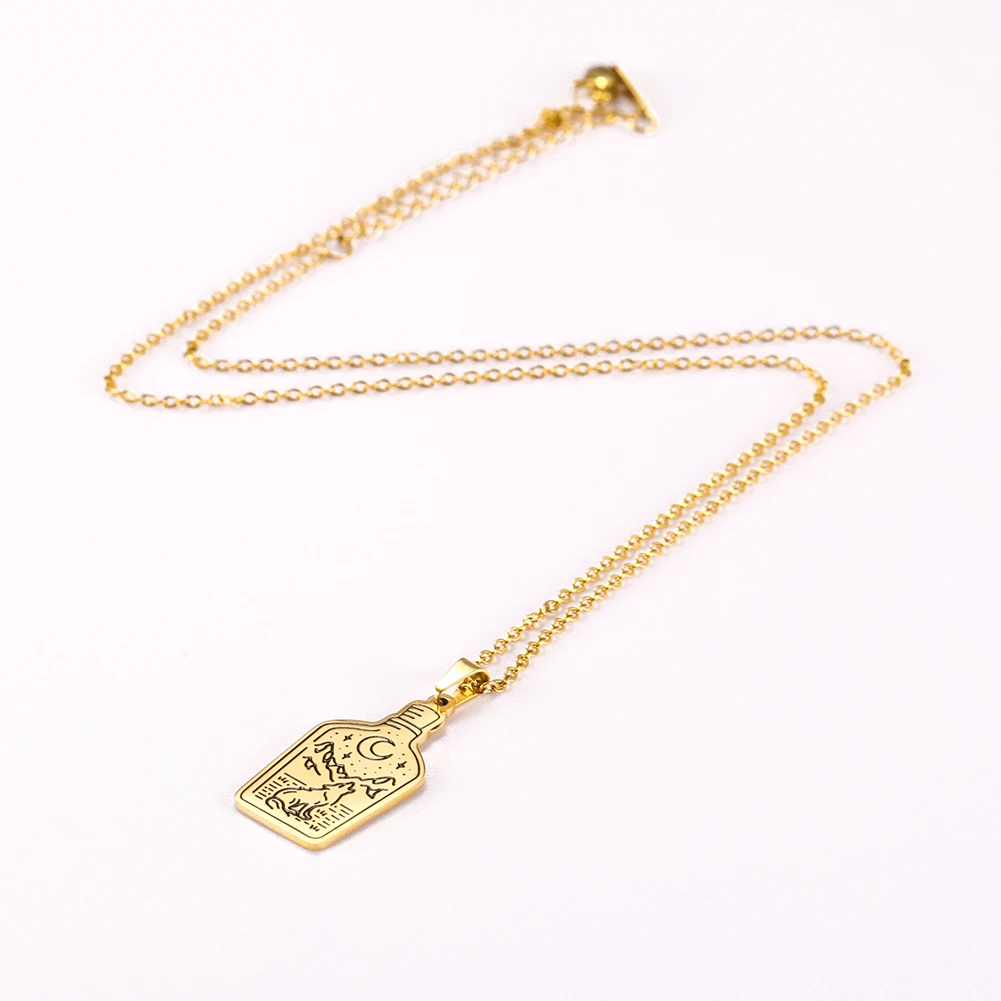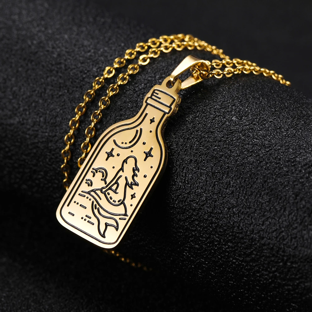 Ожерелье Skyrim из нержавеющей стали с кулоном русалка, волк, луна, звезда, бутылка монтиона, золотой цвет, подарочное Ювелирное Украшение для женщин