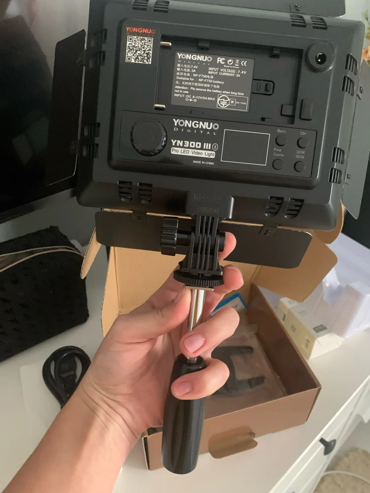 Классный свет, очень яркий, его хватает для съёмки в полной темноте с неплохим запасом. Рассеиватели никудышные, можно сразу выбросить. Аккумулятор хороший, штатив тоже норм, если его не тормошить. Комплектная ручка норм, подставка тоже пойдёт, хотя всё пластиковое. Но, думаю, проживёт, если дома снимать и не ронять все это дело. CRI, конечно не 95, но тоже неплохо (отдаёт в зелёный немного). Думаю второй приобрести, для заполняющего света. Пришла крайне быстро - два дня в Нижний Новгород.