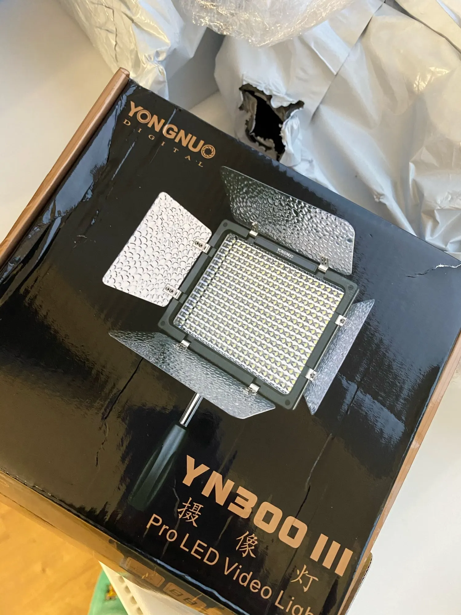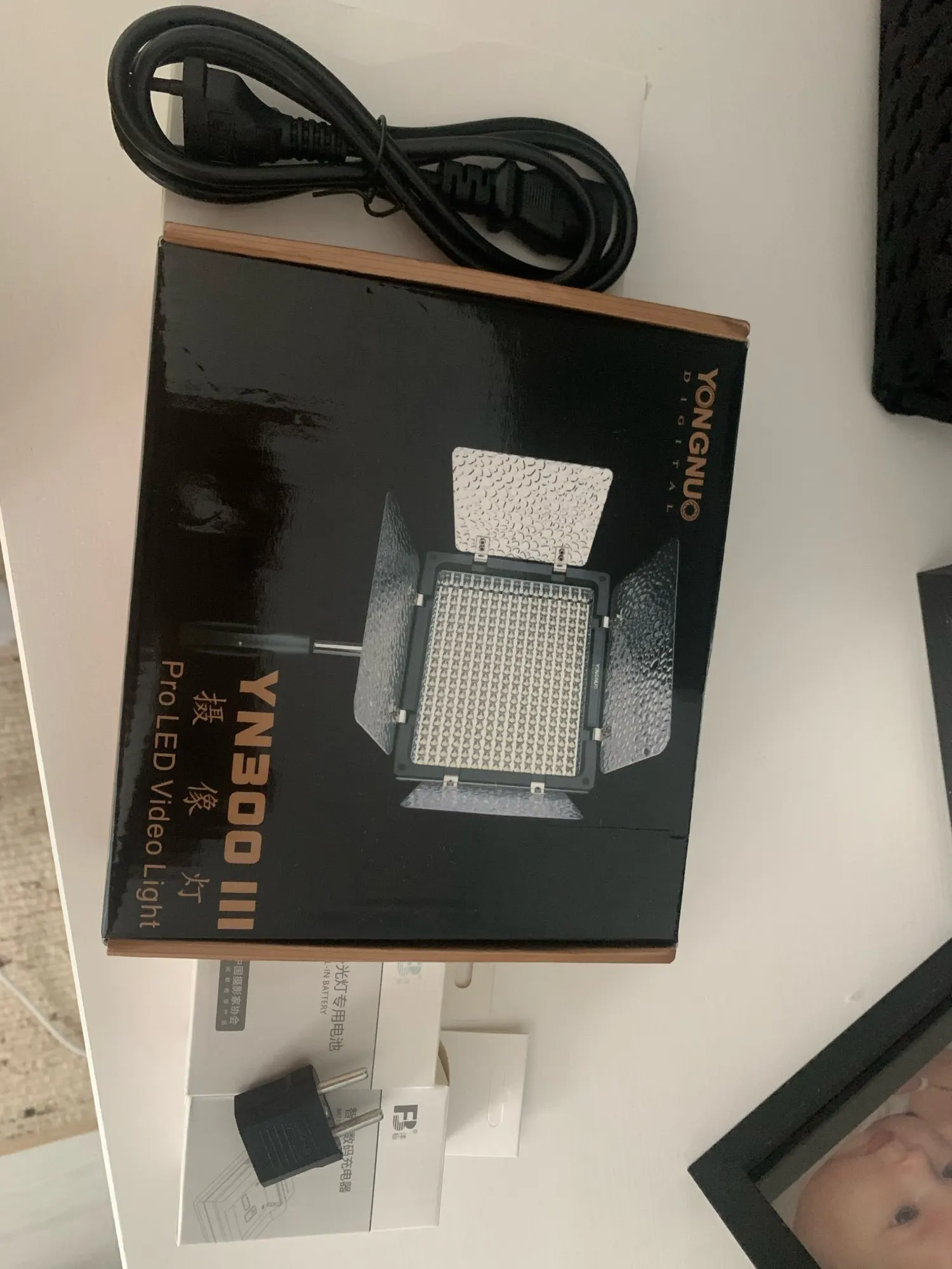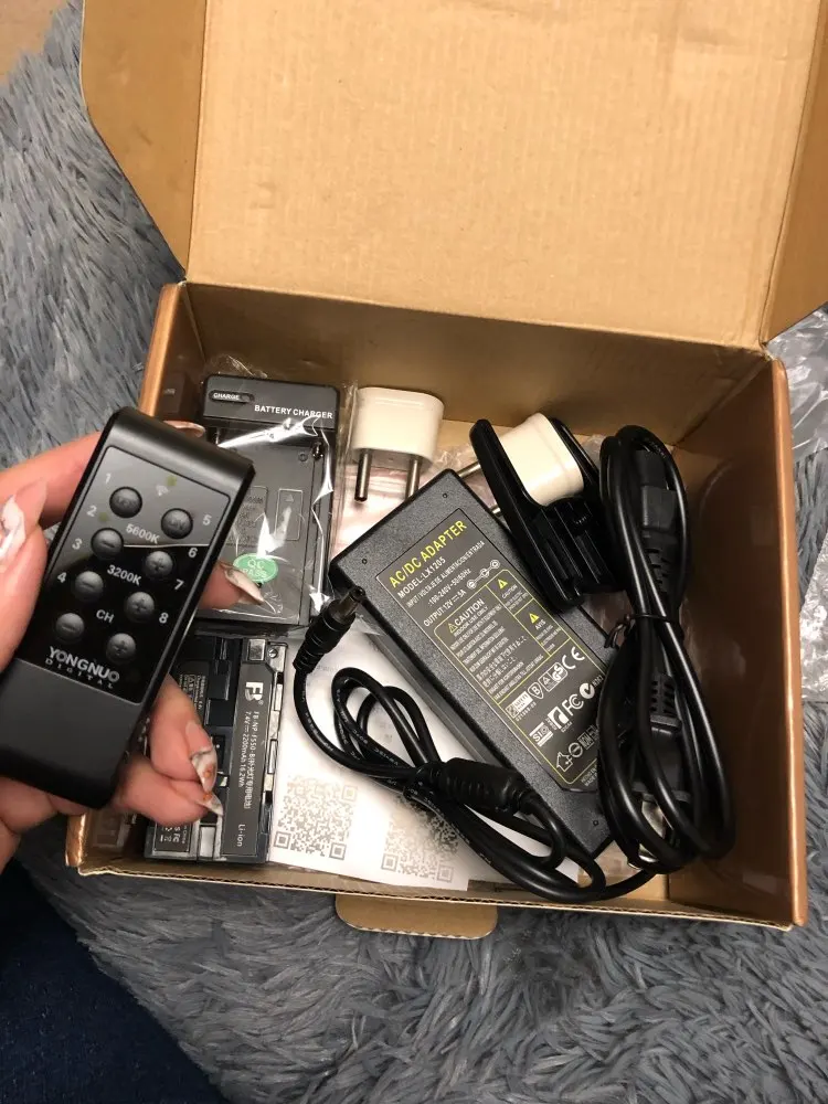 Я в восторге. Свет принесли на дом, через 5 дней. В отличной упаковке. Коробка новейшая, фирменная, аж скрипит от блеска. Внутри все целое. Полный описанный комплект. Работает отменно. Очень мощный, софт вставка понравилась, удачная. Батарея очень большая, надеюсь, она того стоит, была заряжен, но % не знаю, дозарядила. Небольшие нюансы: ручка плохо держит, наклоняется "голова", переходник для розетки имеется, но вилка от самого аккумулятора чахленькая, гнётся. Результат работы на фото, подсветка слева и позади детей.