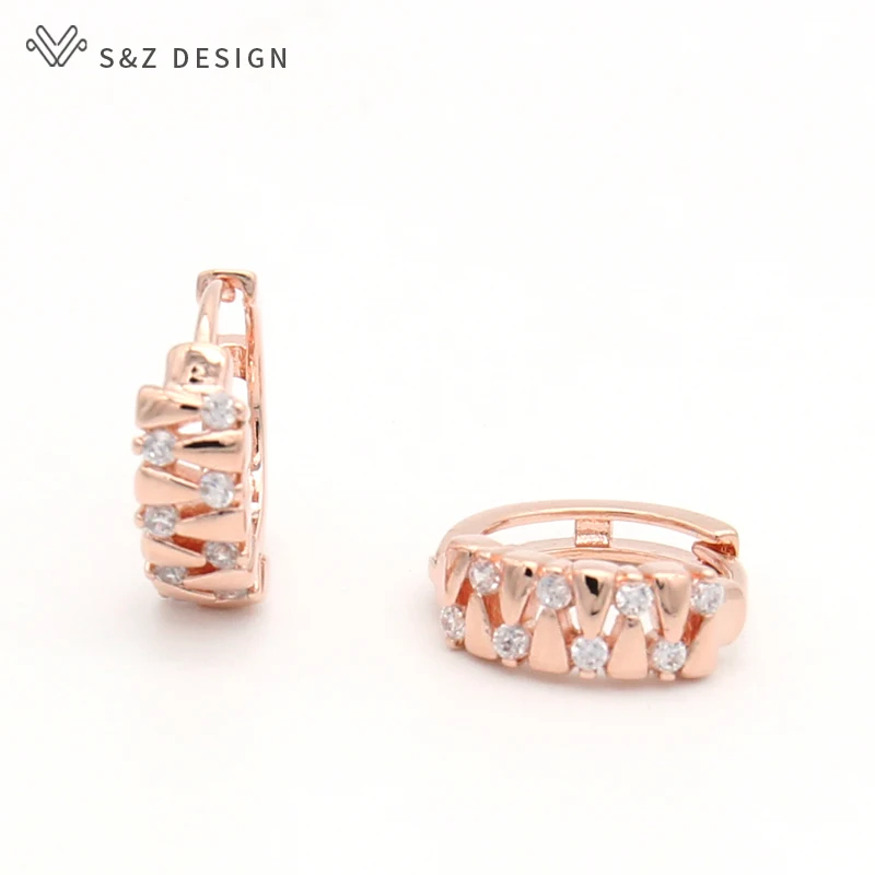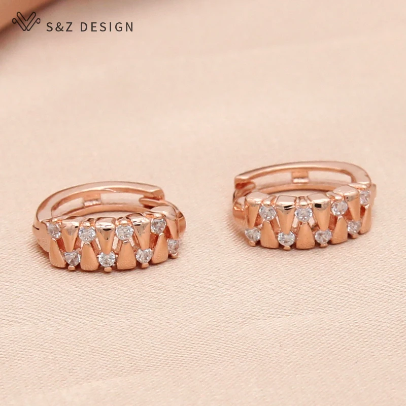 Женские серьги-гвоздики из розового золота 585 пробы, с фианитами