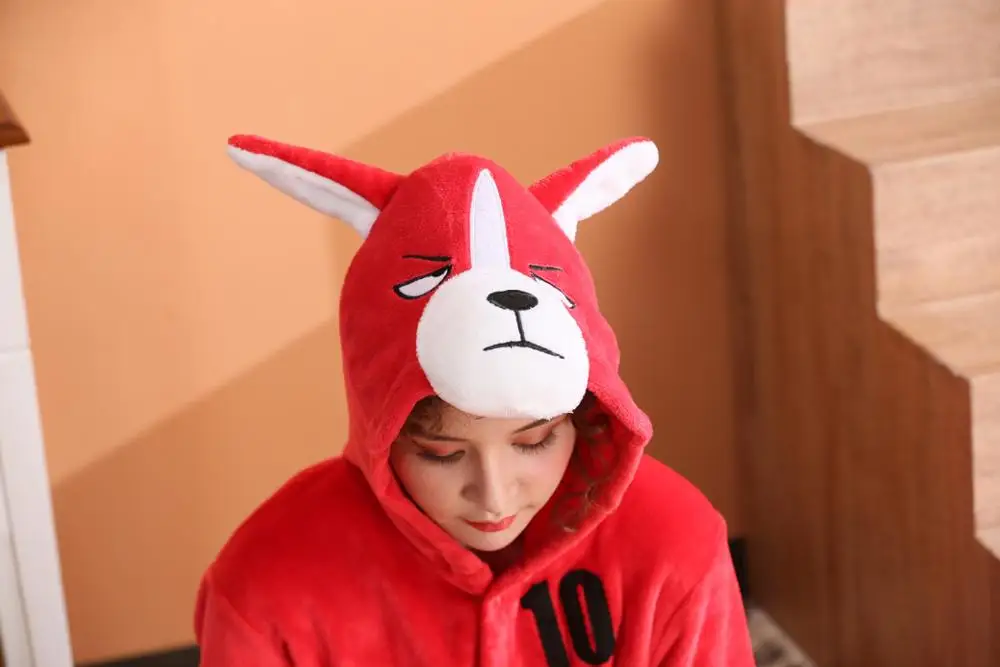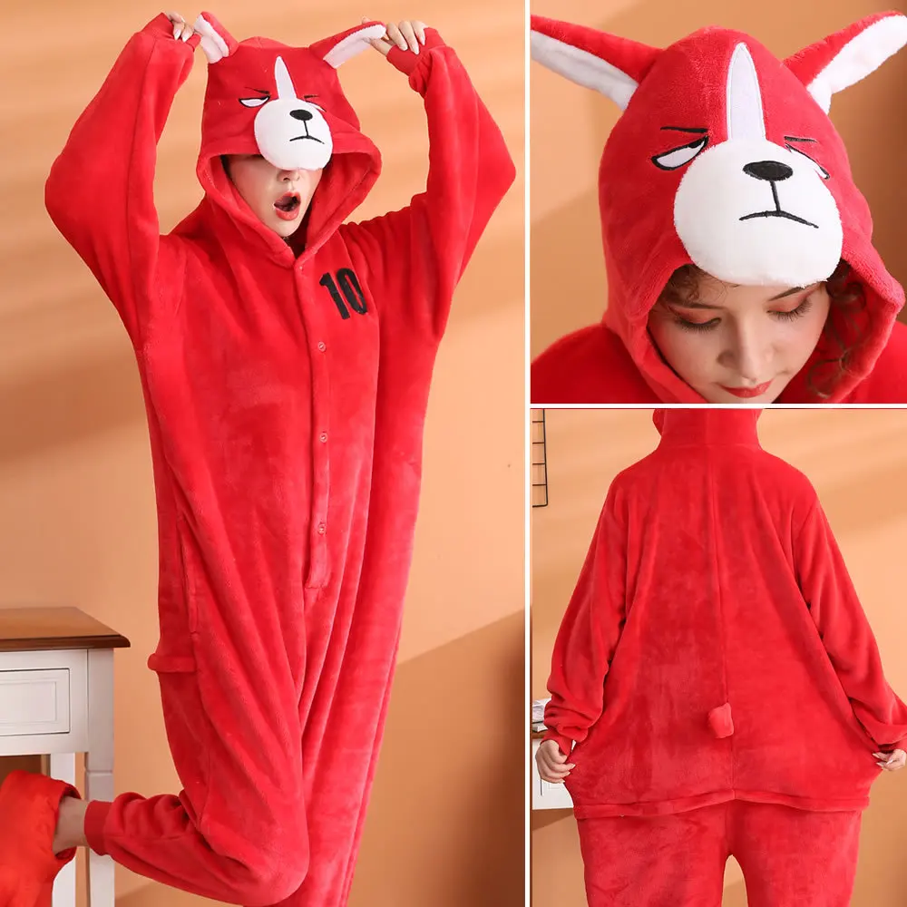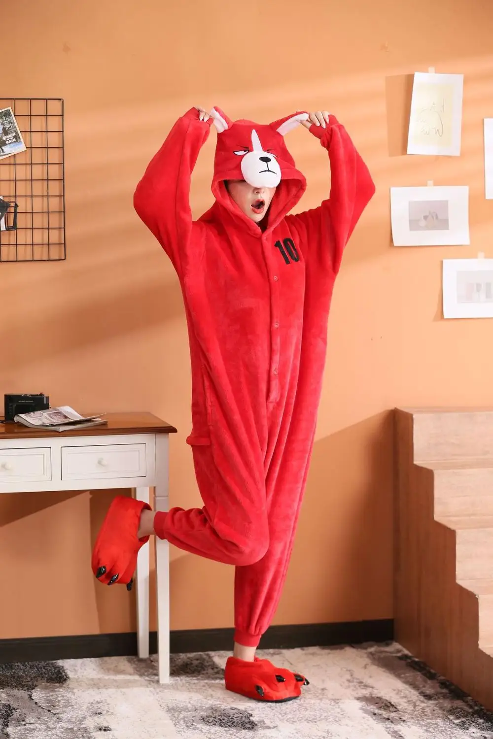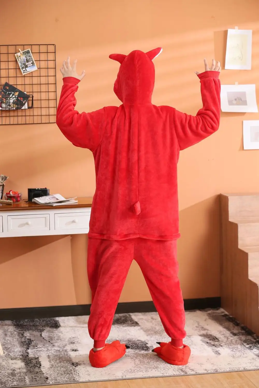 Красный комбинезон для взрослых с изображением животных, пижама на молнии для мужчин и женщин, костюм для косплея на Хэллоуин