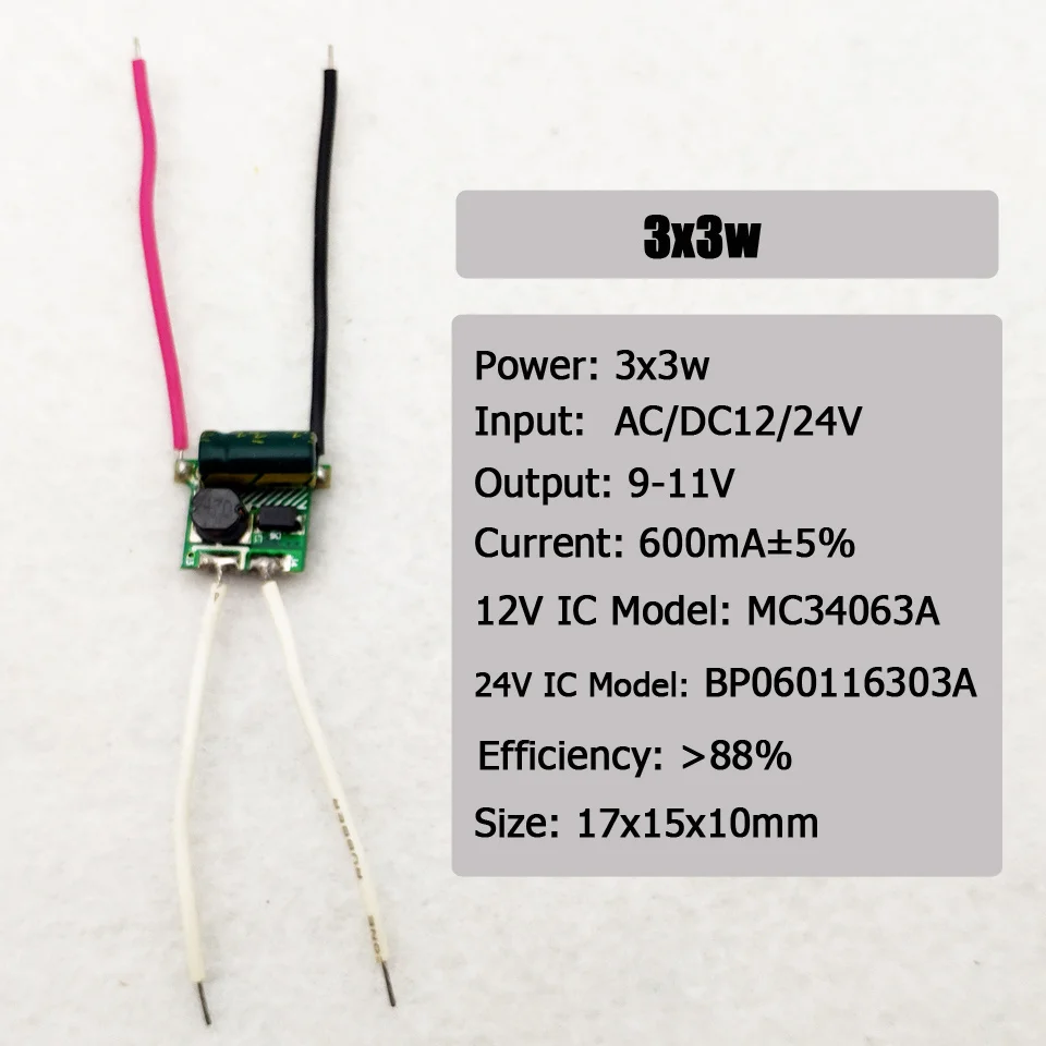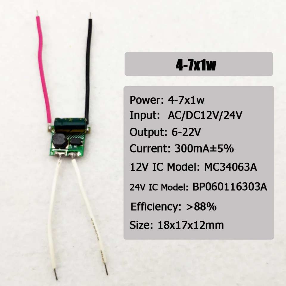 Драйвер для светодиодного освещения, для печатных плат, 20 светодиодный т., переменный ток12 В24 В постоянного тока, 300 мА, 3x1 Вт, 3x2 Вт, 3x3 Вт, 4-7 Вт, 5 см