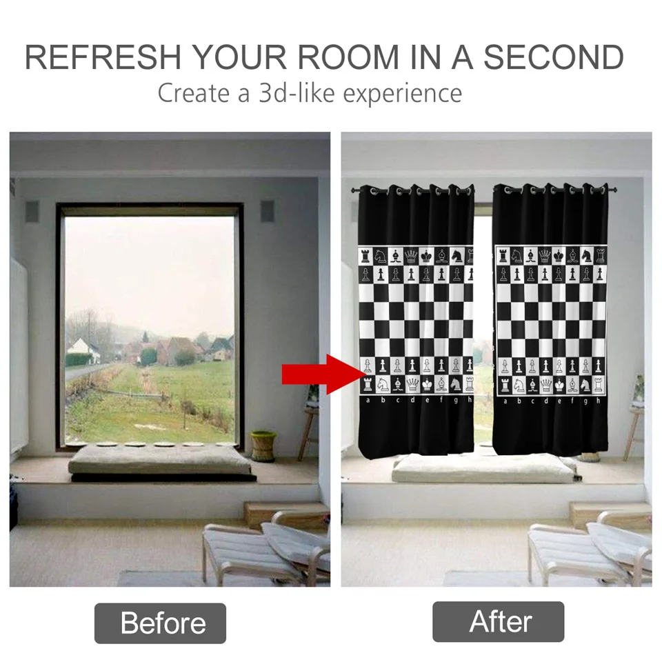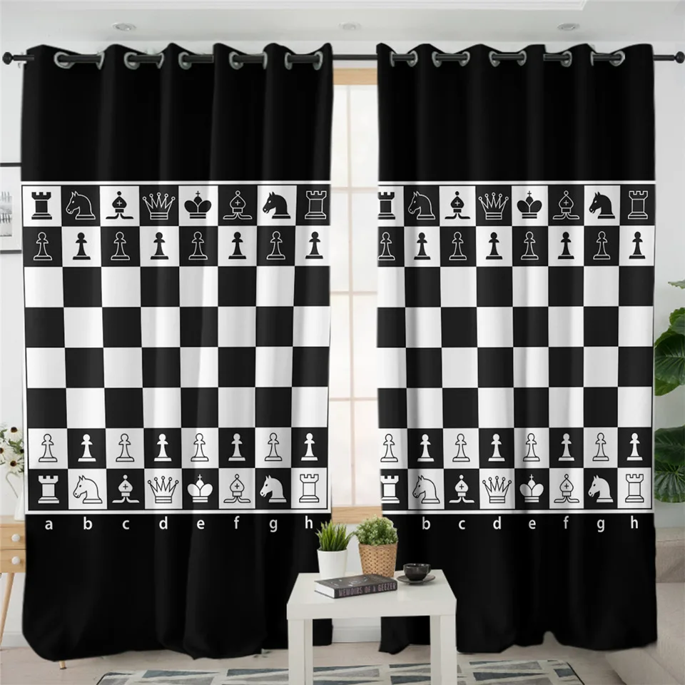 Занавеска для окон BeddingOutlet, шахматная доска, черно-белая занавеска для гостиной, игровые квадраты, затемняющие шторы для спальни, 200x250 см