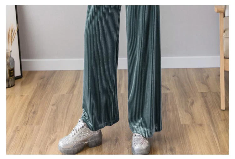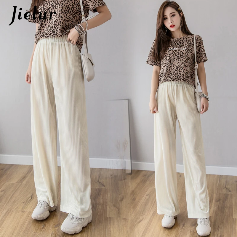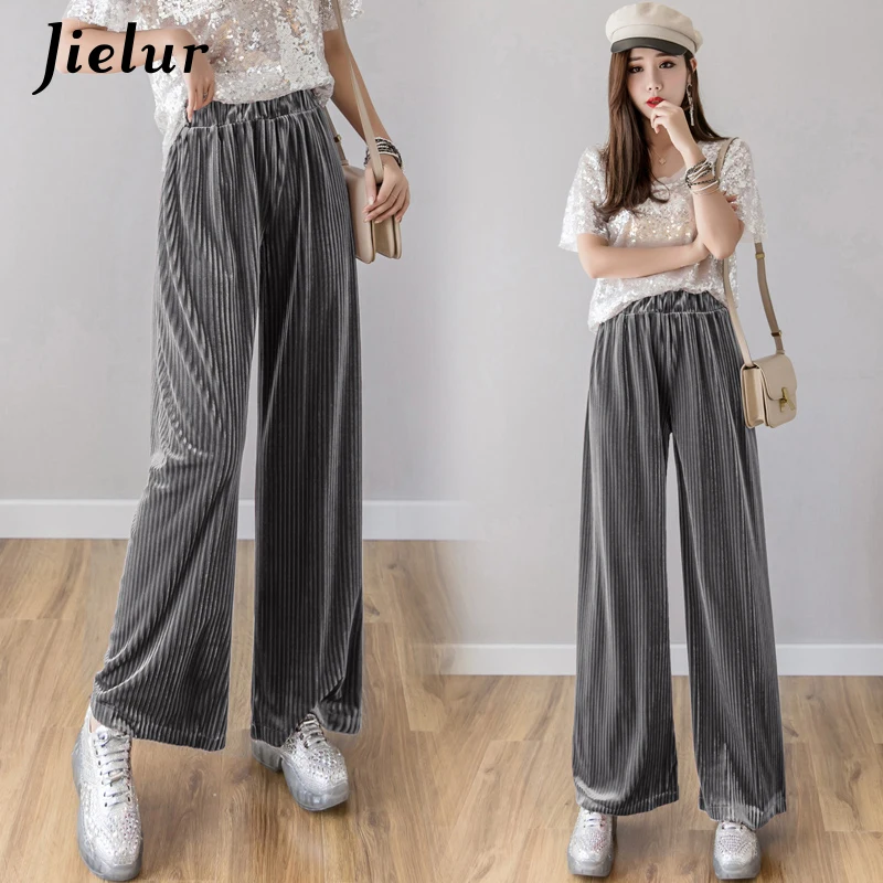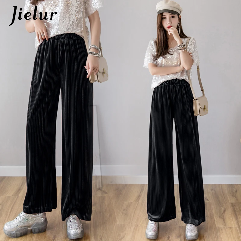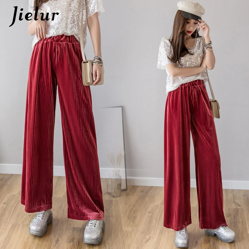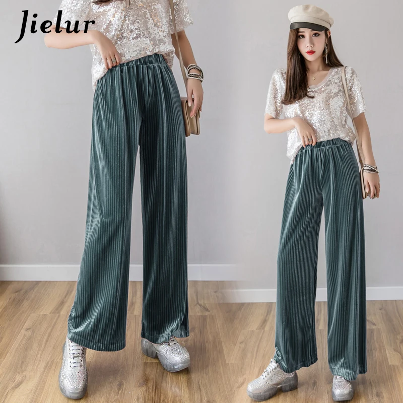 Jielur золотые бархатные широкие брюки для женщин Толстые высокая талия одноцветные Сплошной Цвет 2019 повседневные Pleuche Femme модные Осень-зима Брюки