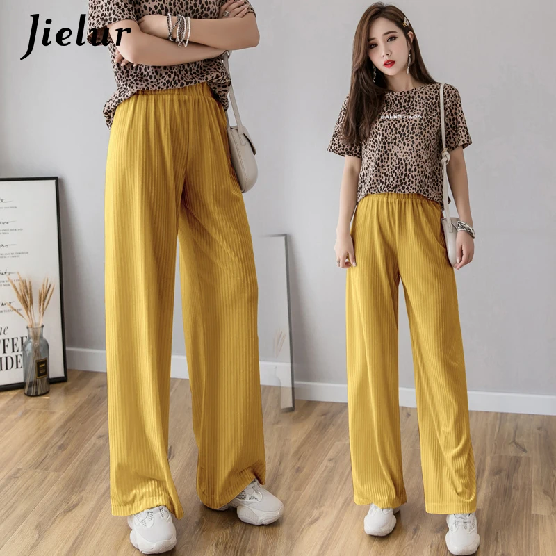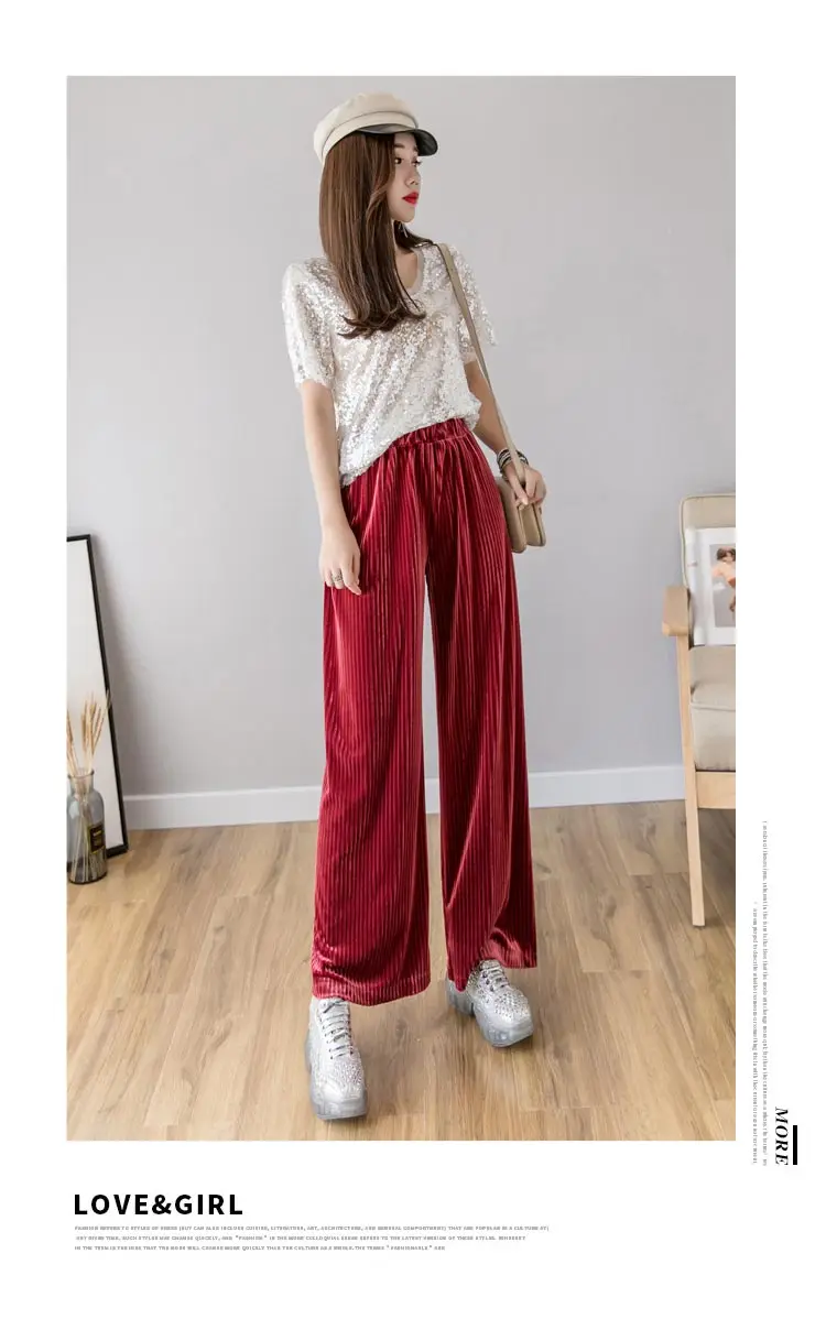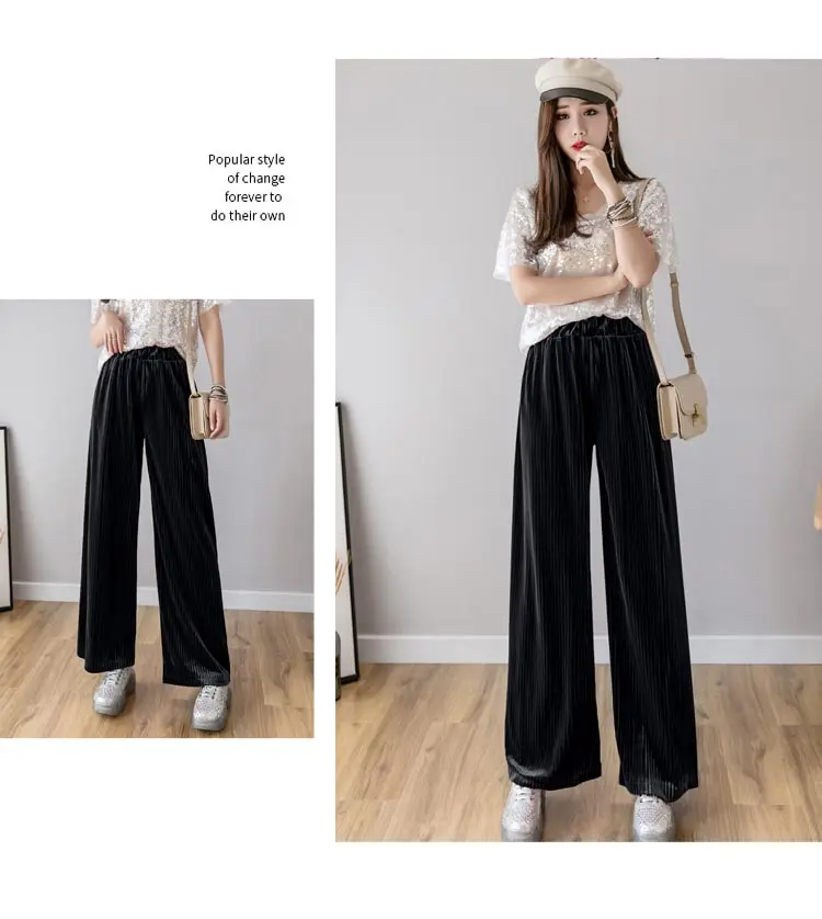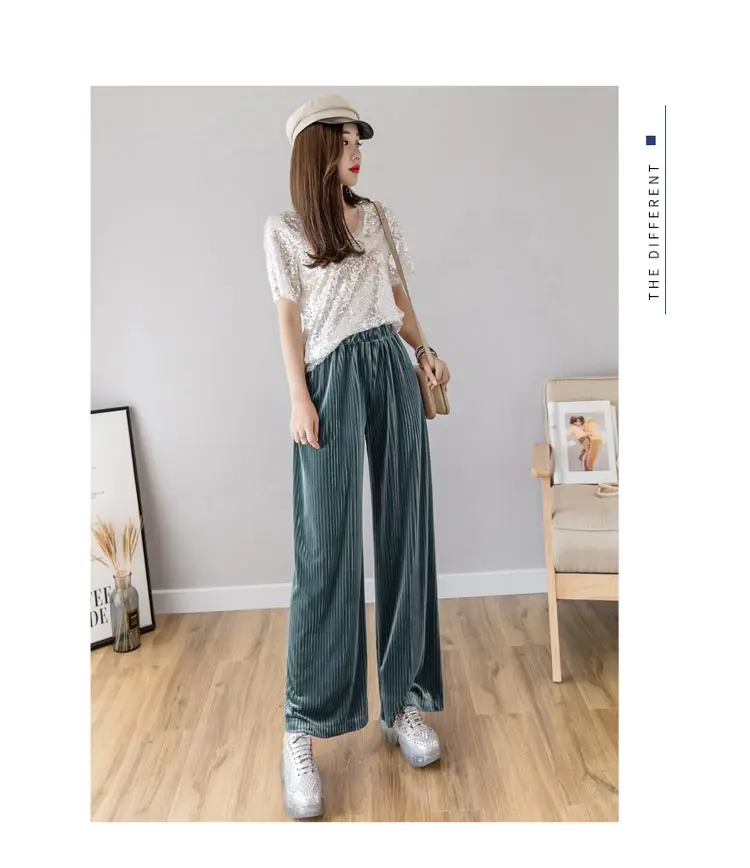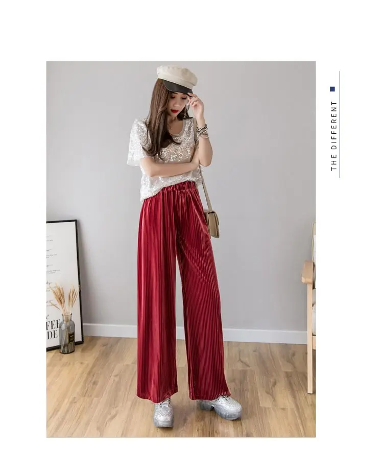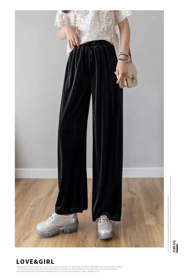 Jielur золотые бархатные широкие брюки для женщин Толстые высокая талия одноцветные Сплошной Цвет 2019 повседневные Pleuche Femme модные Осень-зима Брюки