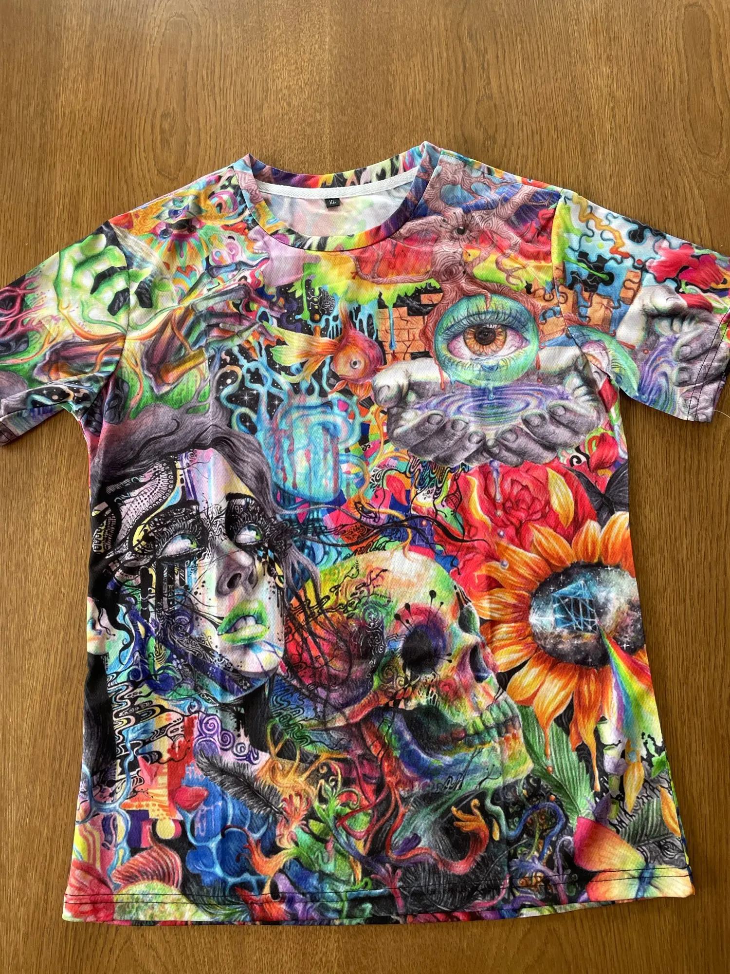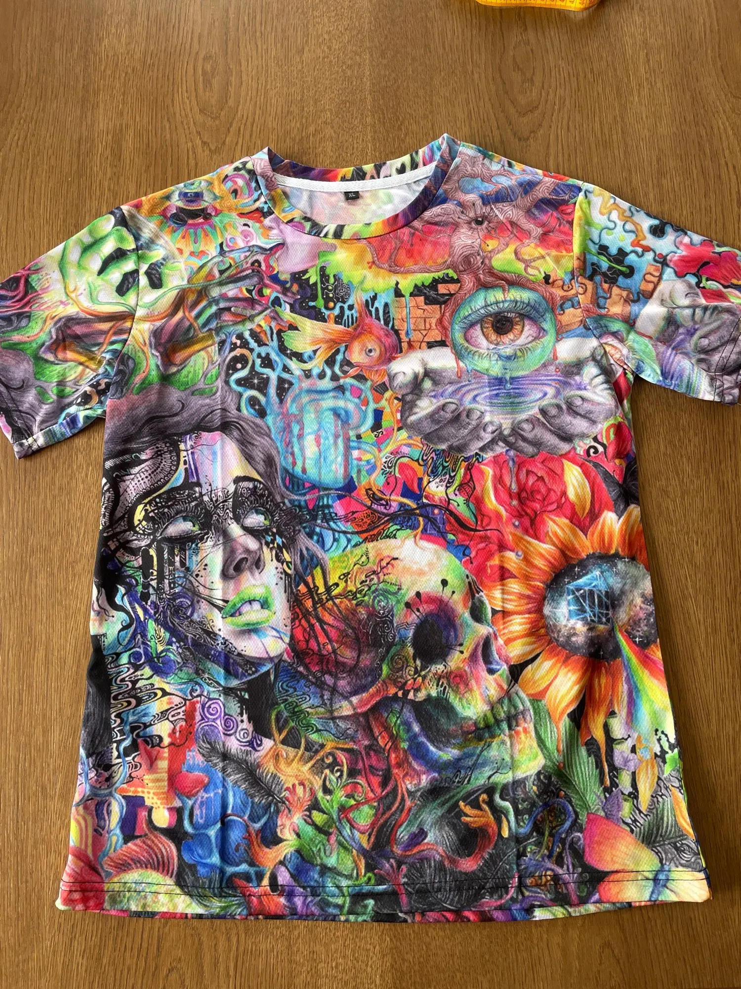 Принт качественный, но не такой яркий как на картинках, но это не проблема) сама тконь тоненькая, для жаркой погоды в самый раз. В центральную Украину шла без малого месяц. Доволен. Рекомендую