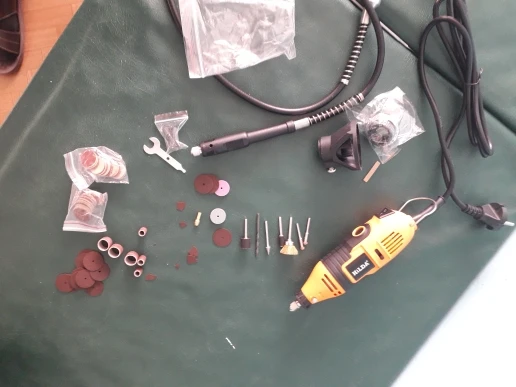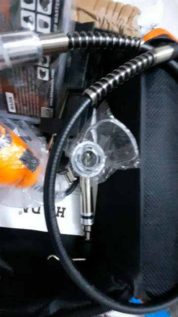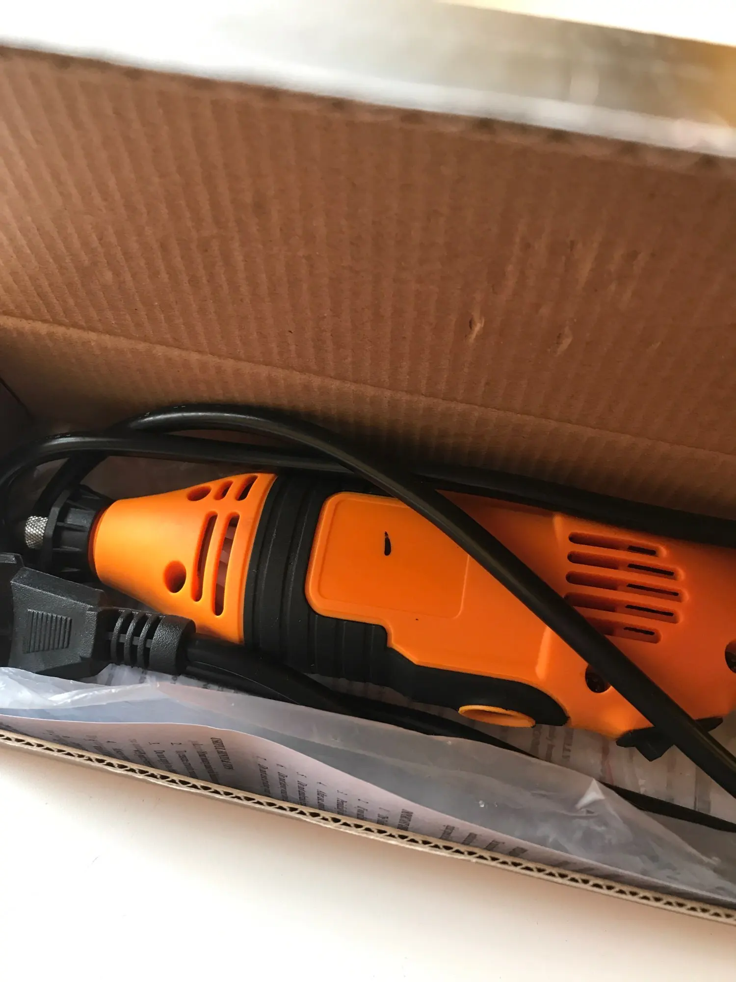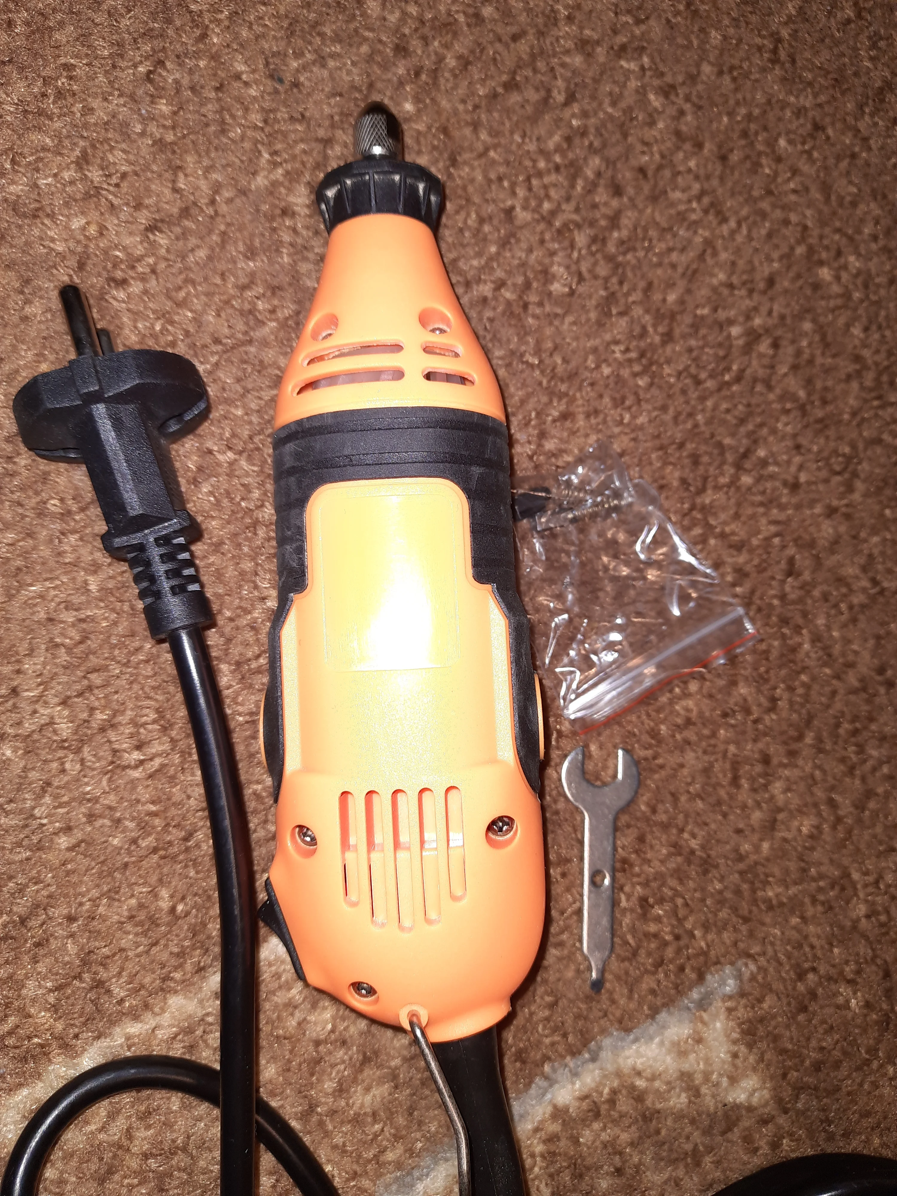 Дошло за 6 дней по России. Не ожидал что аппарат будет таким маленьким, может просто потому что не с чем было сравнить, насадки тоже миниатюрные. Рукав сразу пришлось смазать моторным маслом, т.к. тросик внутри почти сухой, струбцина и насадка под вертикальное фрезерование пластиковые, нужно быть аккуратным, но в целом достаточно для такой малютки. оснастка средняя, одна насадка была со сколом и кривовато приклеена, не приятно, но за такую цену большего ожидать не следует. Сама машинка понравилась, собрана добротно, регулировка оборотов адекватная, выключатель на мой взгляд не очень удобно расположен в задней части, но привыкнуть можно, цанга в комплекте только одна. Биения без насадок нет, с насадками появляется, но это зависит от их качества, берите дороже, жужжит приемлемо, греется мало, чего не скажешь о рукаве, вот тот, в районе рукоятки греется в процессе работы ощутимо. В целом все понравилось, за эти деньги отличное приобретение, работы для него всегда найдется, рекомендую.