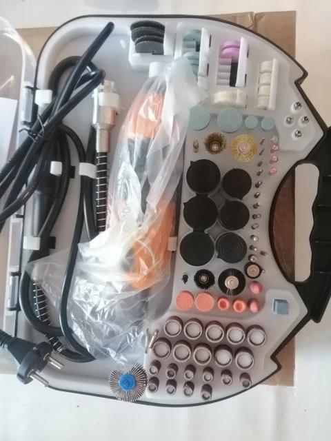 Все работает. Посылка пришла отлично упакованной. Я в полном восторге. Дрель маленькая, лёгкая, приятно лежит в руке. куча насадок в маленькой коробочке. Единственное, что я не поняла, как подключать насадку-ручку.