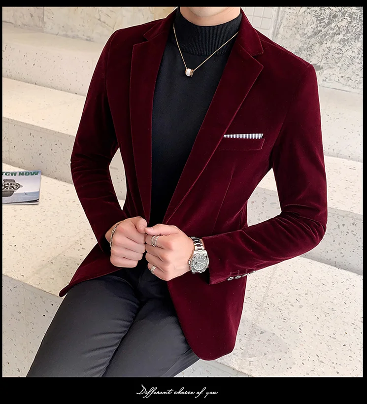 Бархатные блейзеры бордового цвета, Мужские приталенные повседневны...