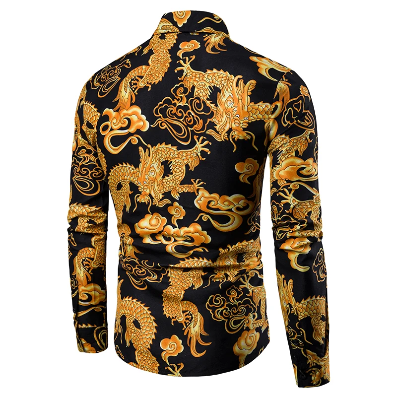 Китайская рубашка с принтом дракона, мужская рубашка с длинными рукавами, осень 2020, новые корейские трендовые рубашки, Умные повседневные мужские деловые рубашки