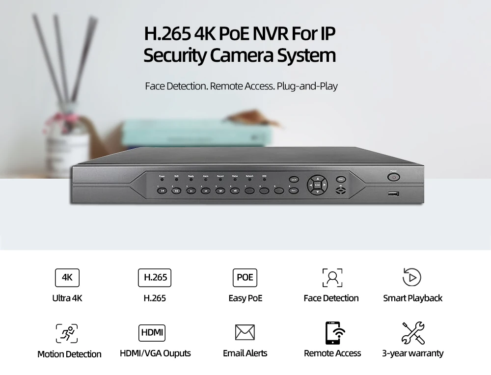 POE NVR FeaturesHDMI&VGA output / Motion detection/email Alert
