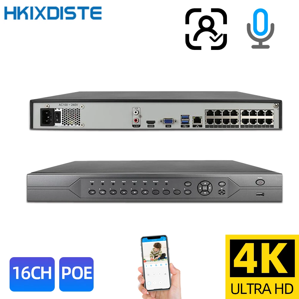 16-канальный сетевой видеорегистратор, Full HD, 5 Мп, 4K, 16 портов (IEEE802.3ataf), RJ45, HDMI, POE, NVR, для IP-камер, PTZ