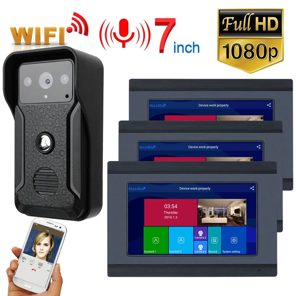 7-дюймовый проводной Wi-Fi видеодомофон дверной звонок Домофон с HD 1080P Проводная камера ночного видения, поддержка удаленного приложения домофон, разблокировка, запись, снимок
