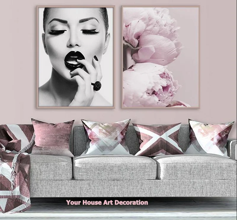 Скандинавский плакат и печать розовый цветок Современная сексуальная красота женщина холст живопись