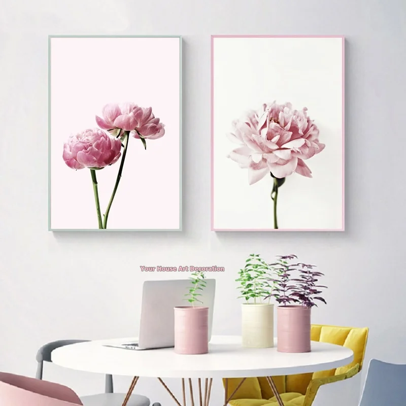 Розовый пион цветок холст живопись спальня домашний Декор стены нордический плакат модульная...