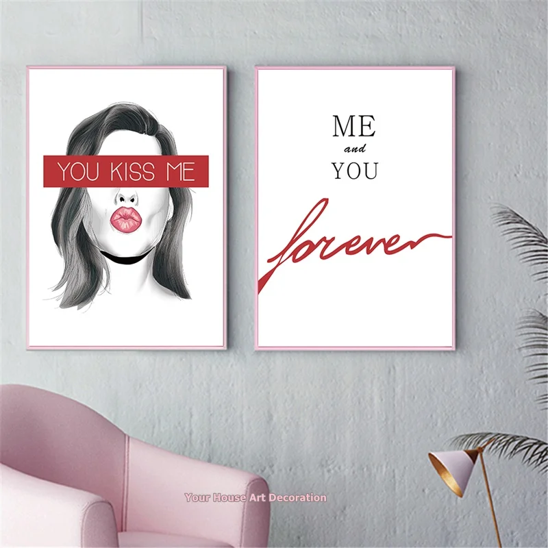 Абстрактный Альберт Красота Девушка поцелуй Красочный холст живопись письмо текст говорящий лов...