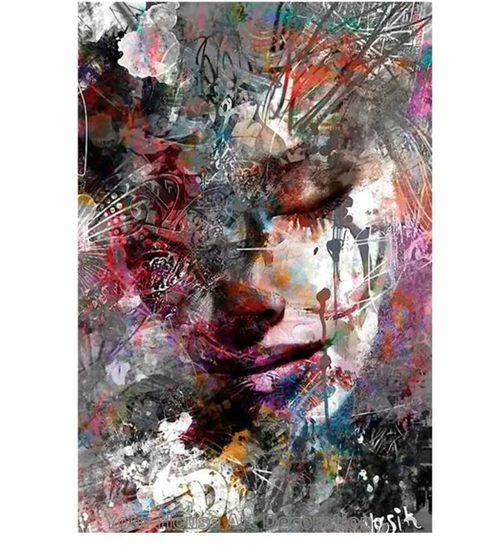 Красочные абстрактные девушки лицо стены искусства печати и плакат холст живопись Современная Gra...